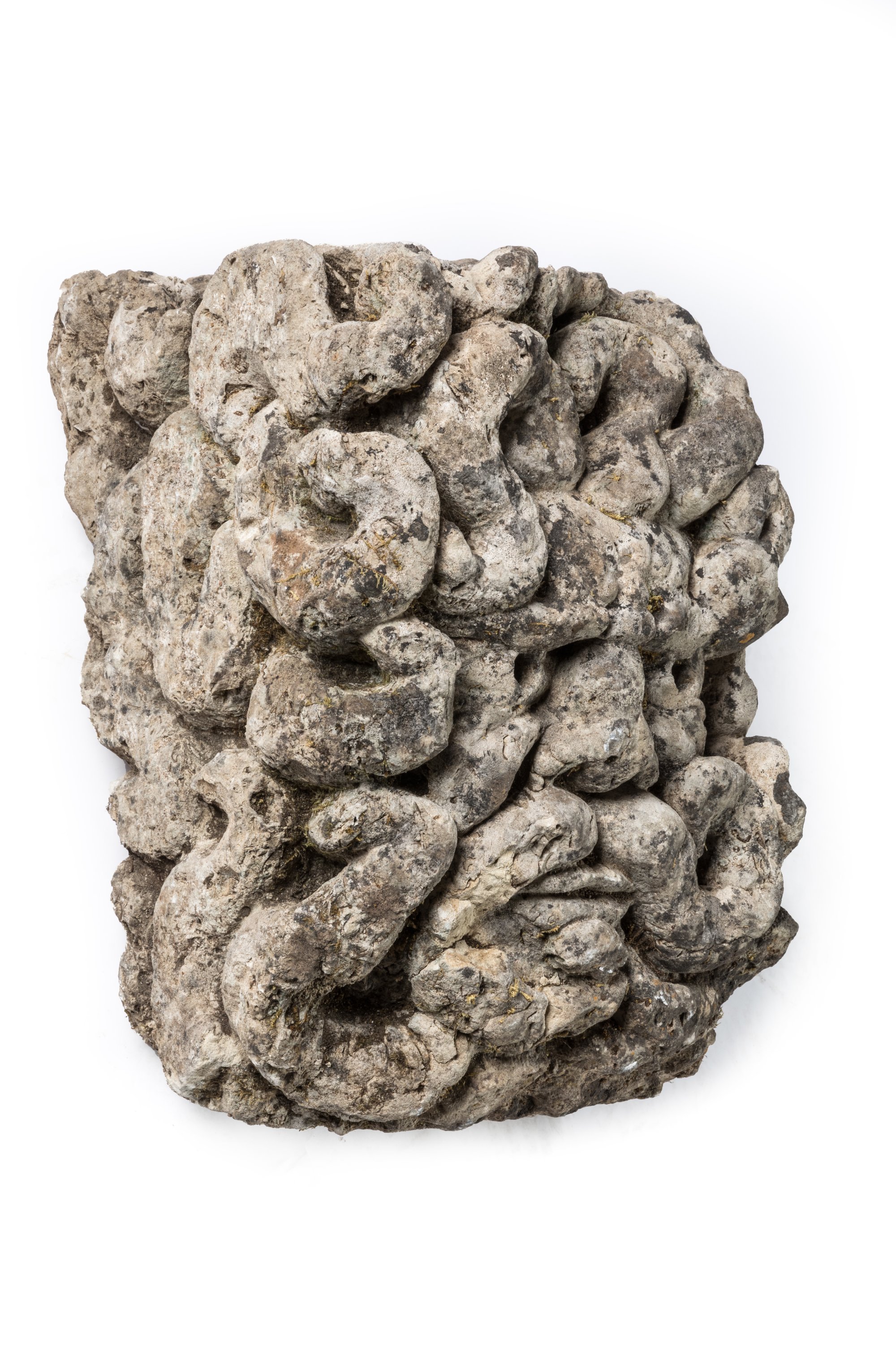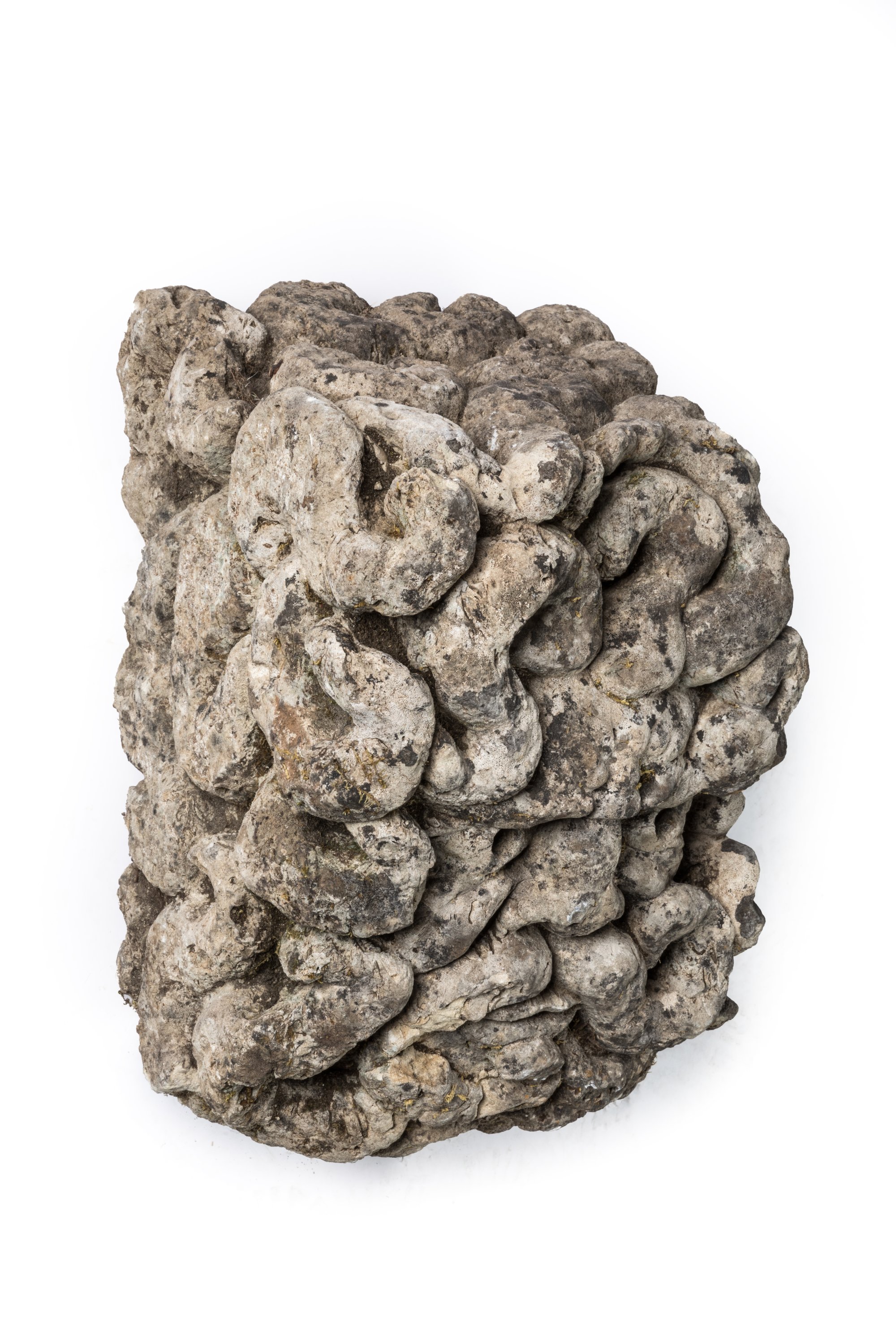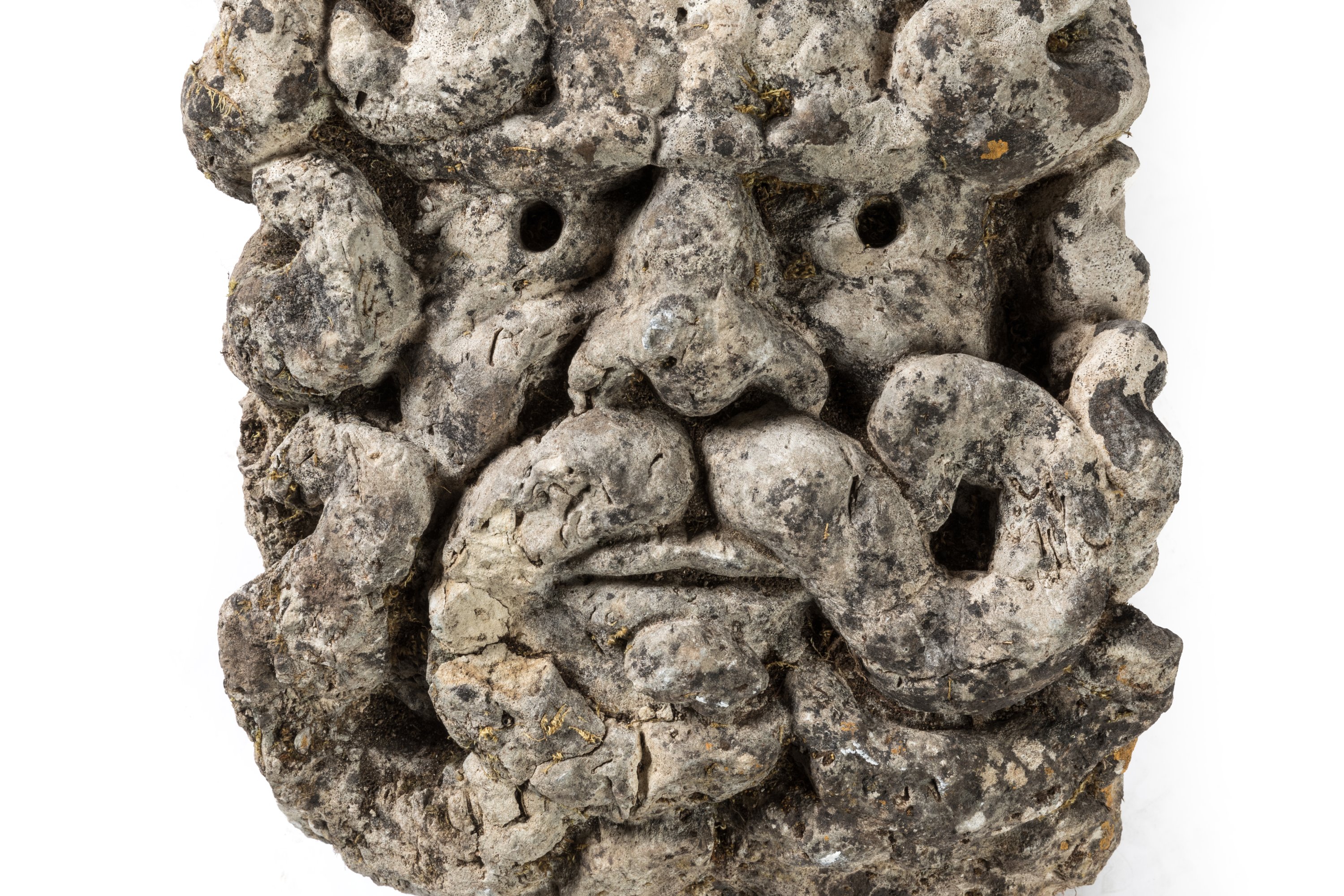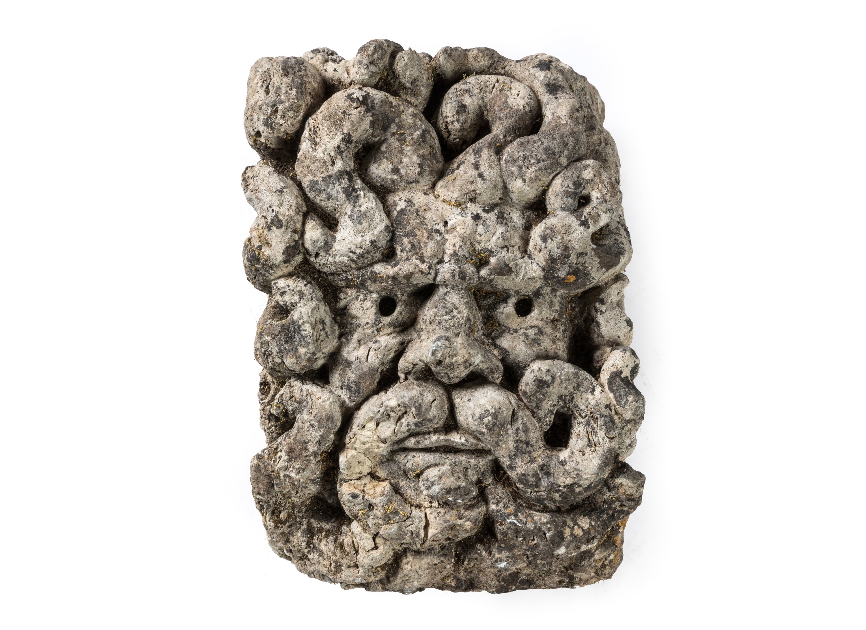 A grotesque limestone head, supposedly part of a fountain of the Chanteloup Castle.