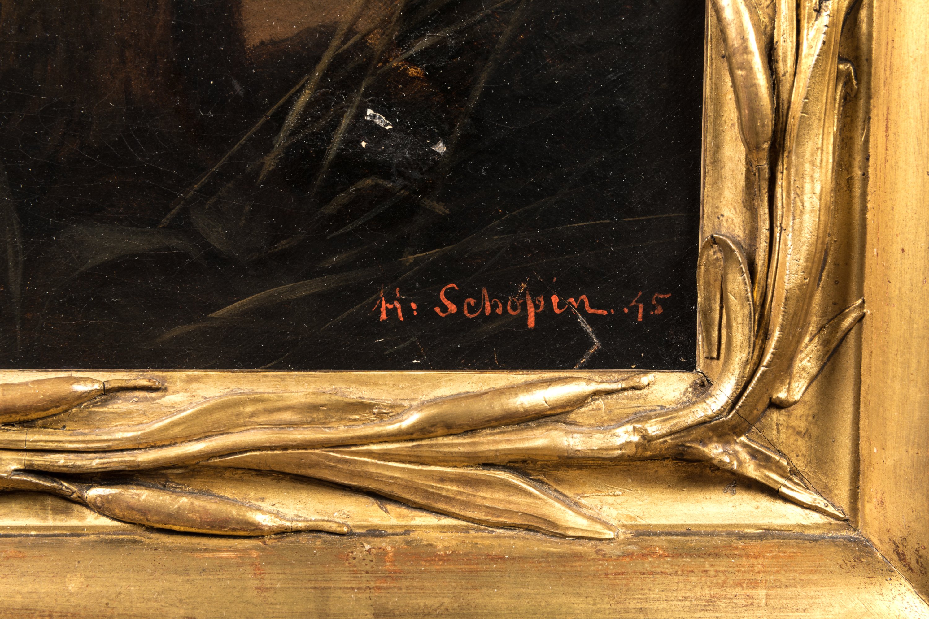 Henri Frédéric Schopin se forme dans l'atelier du Baron Antoine-Jean Gros (1771-1835) et obtient le Premier Prix de Rome en 1831. S'il est reconnu comme peintre d'Histoire, il excelle particulièrement dans les tableaux de genre inspirés de la littérature contemporaine, à l'instar de "Paul et Virginie", roman publié en 1787 par Bernardin de Saint-Pierre (1737-1814).