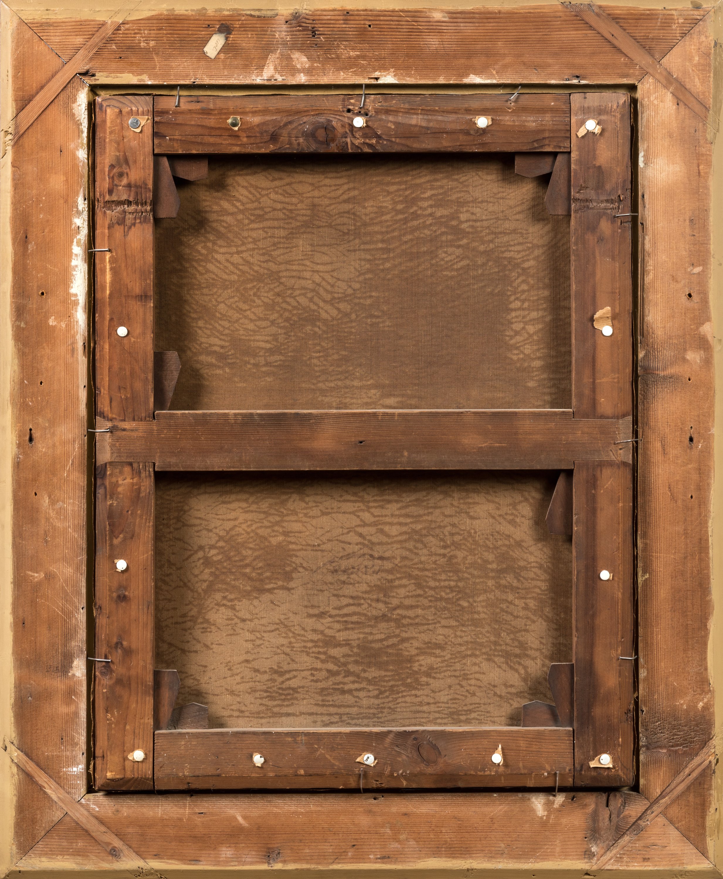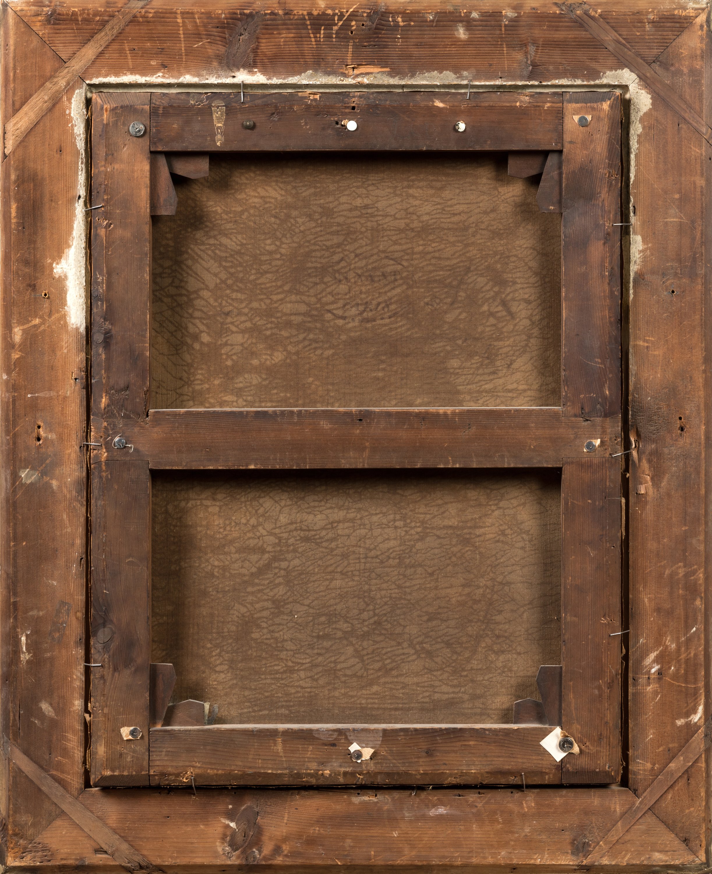 Dans de riches cadres en bois doré et sculpté de roseaux à vue cintrée en partie supérieure (Haut. 84 Larg. 68 cm).