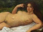 (Femme nue couchée au bord de...