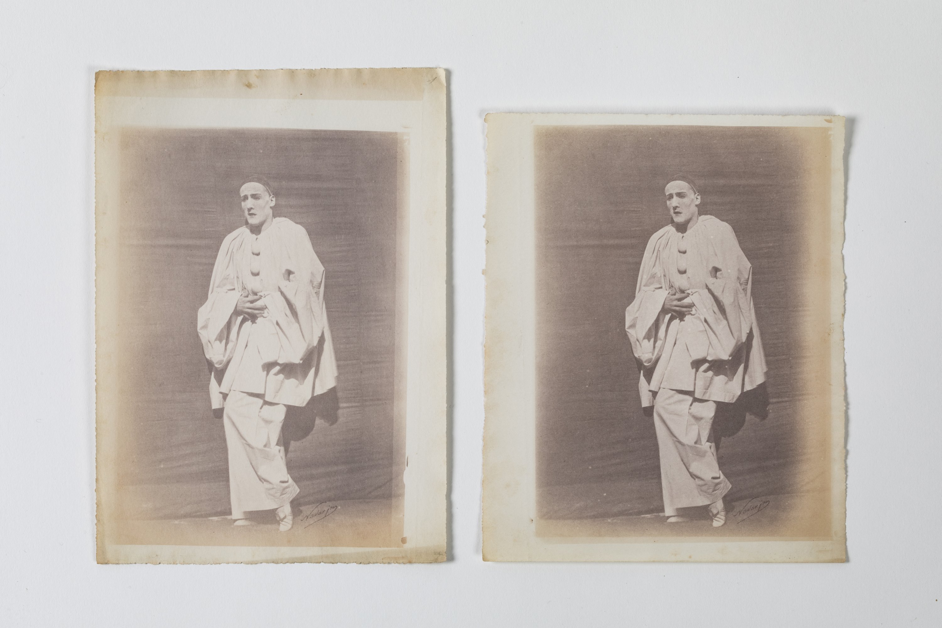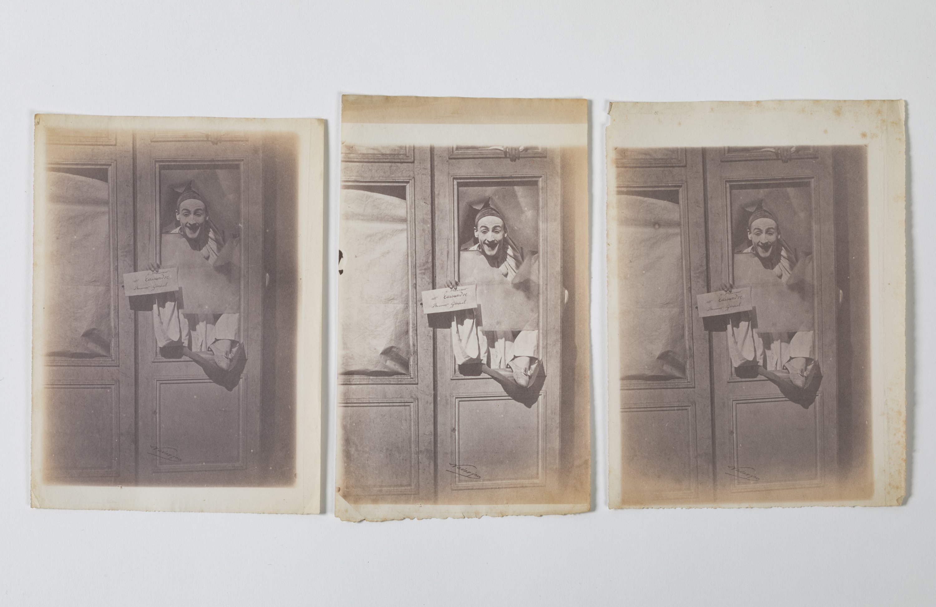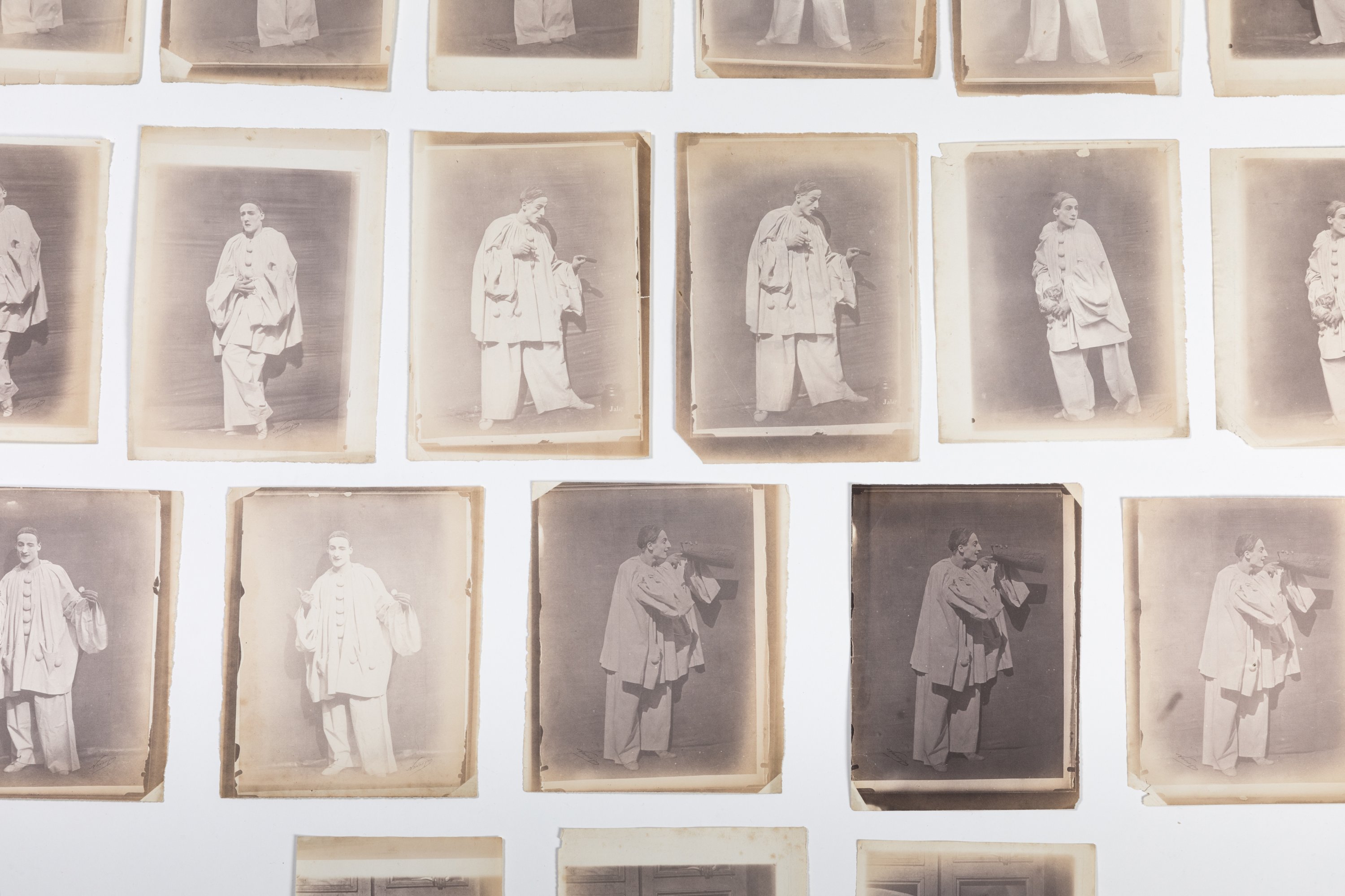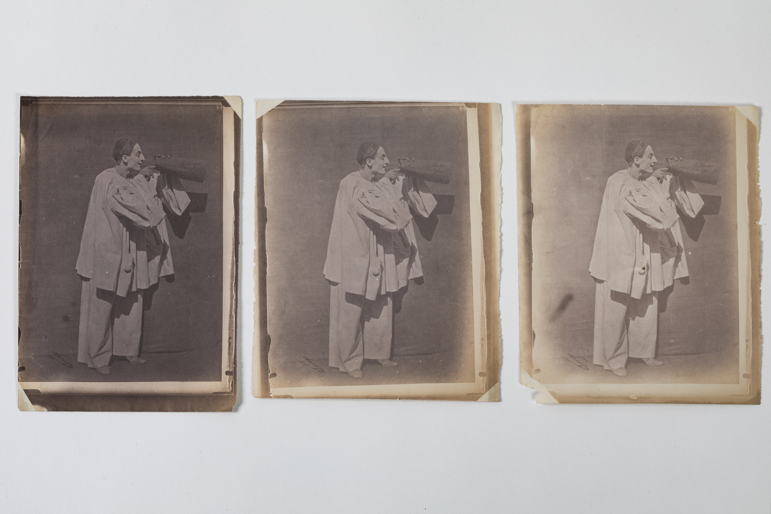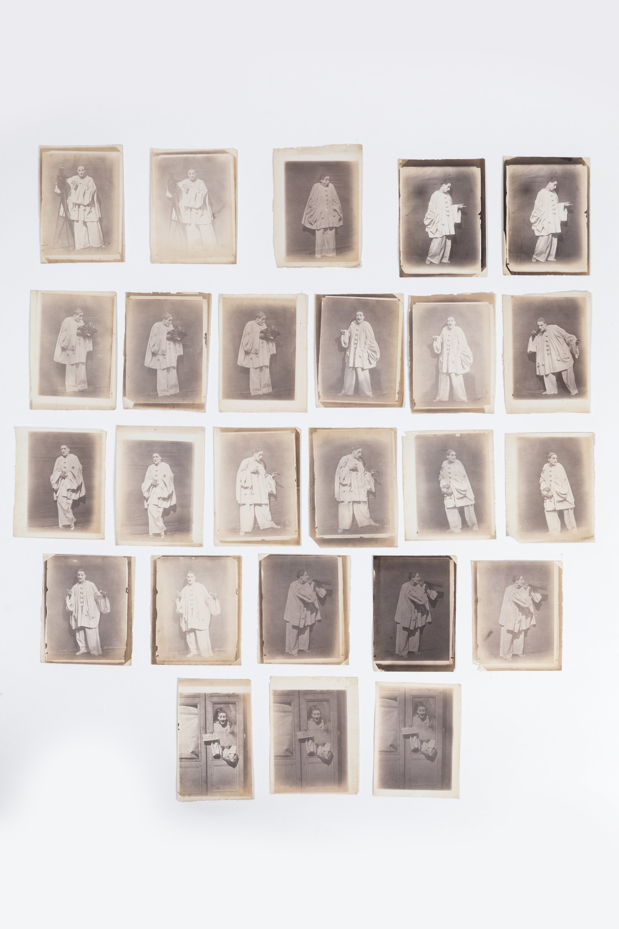 An 1854-1855 series of 25 contact prints of photographs taken by "Nadar Jeune" (Adrien Tournachon, aka) of mime Jean Charles Debureau as Pierrot the Clown.