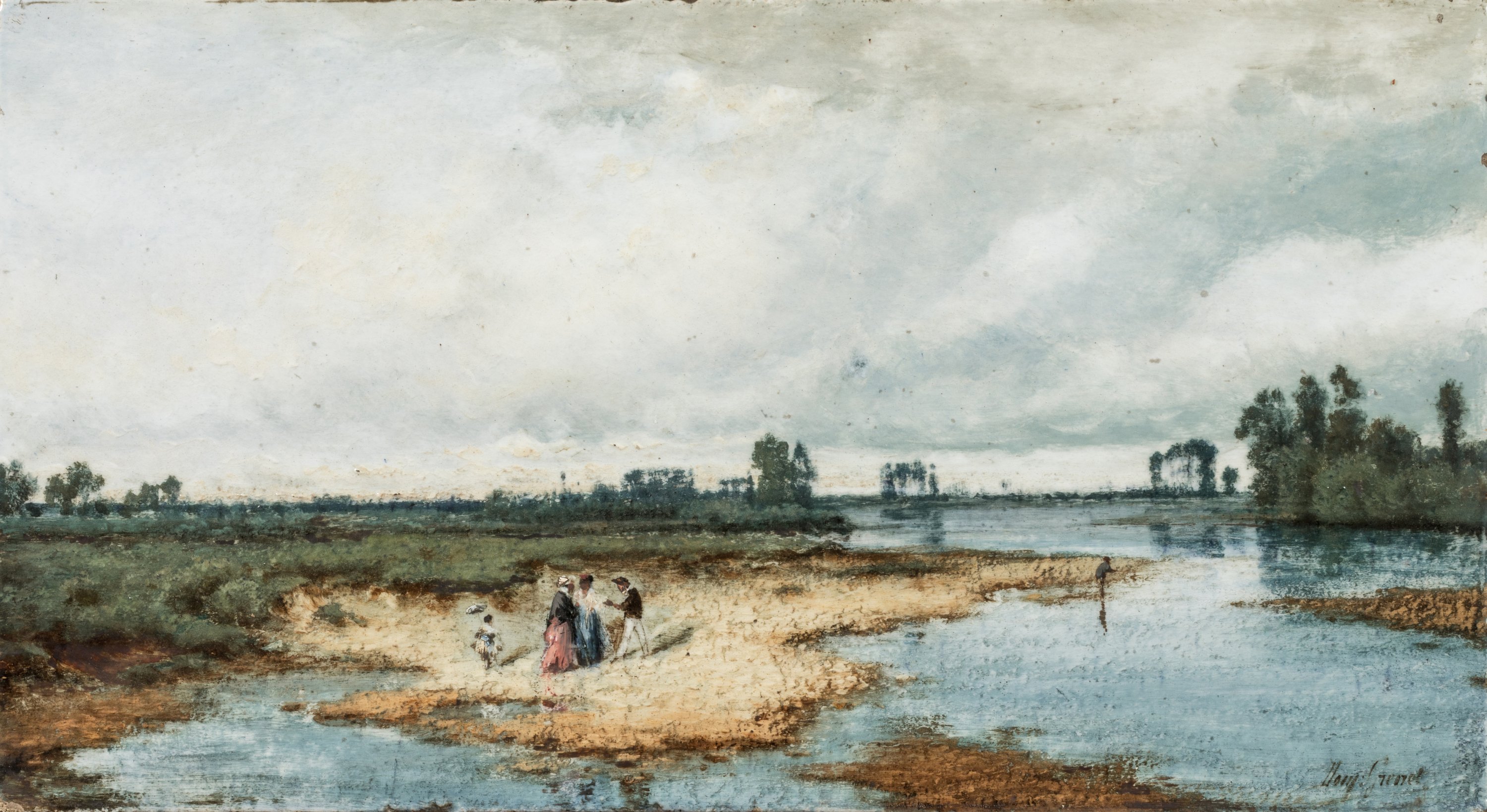 Paysage animé au bord d'une rivière, c. 1881-1885
