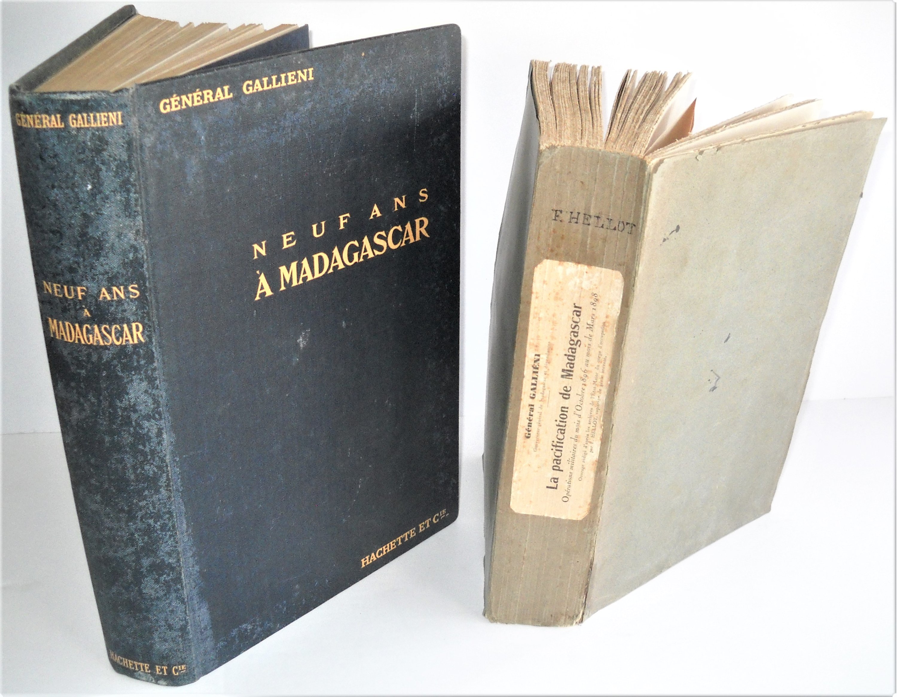 La Pacification de Madagascar. (Opérations d'Octobre 1896 à Mars 1899). Ouvrage rédigé d'après les archives de l'État- Major du corps d'occupation par F. Hellot. Paris. R. Chapelot. 1900. In-4 broch., vii-524 p., [2] f., nombreuses cartes repliées, portrait en héliogravure en frontispice du général Gallieni.