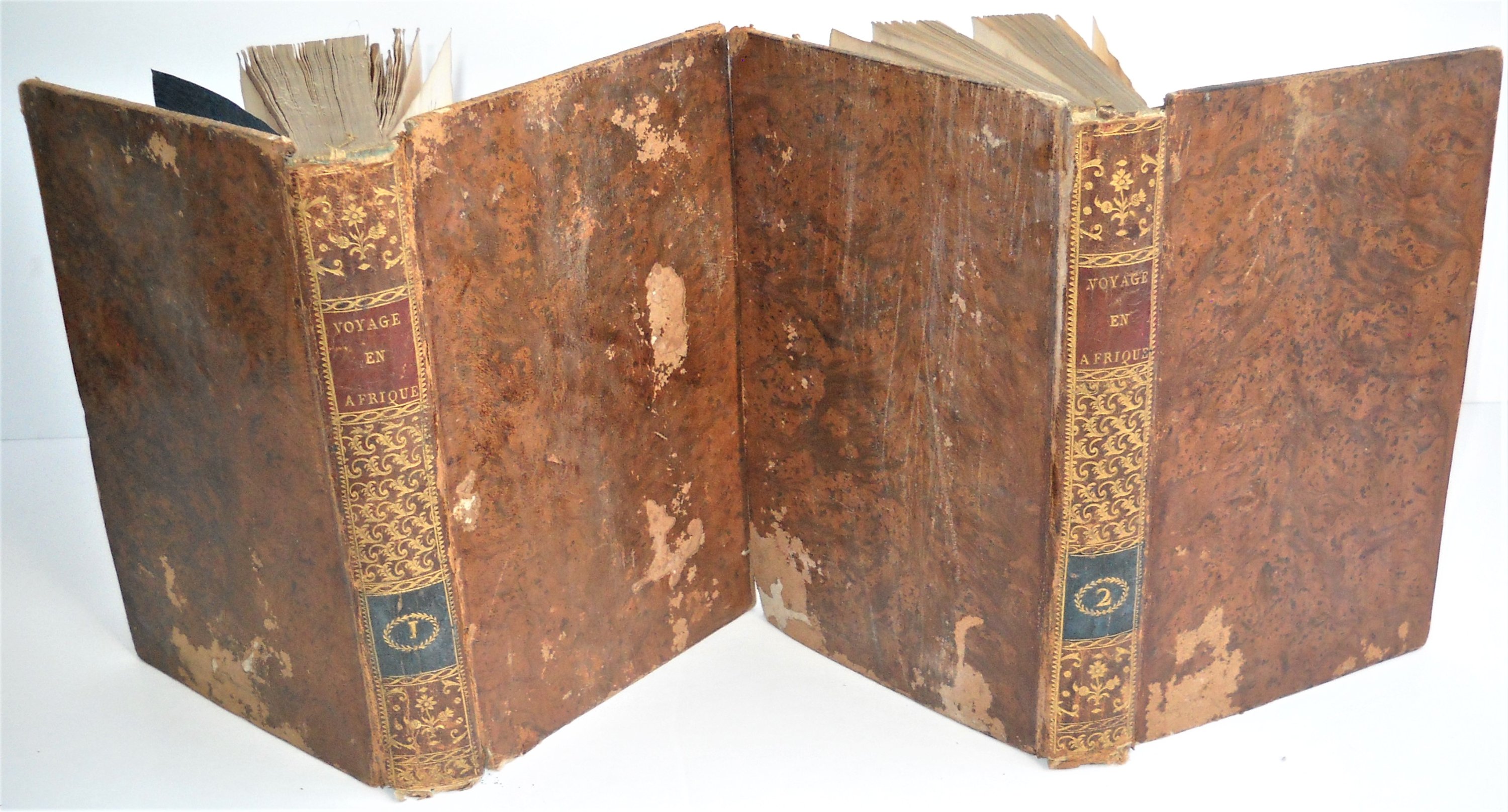 2 volumes in-8, rel. veau en létat. Première édition de la traduction de J.-H. Castéra et M. Benoît du récit complet du voyage en Afrique de lÉcossais Mungo Park.