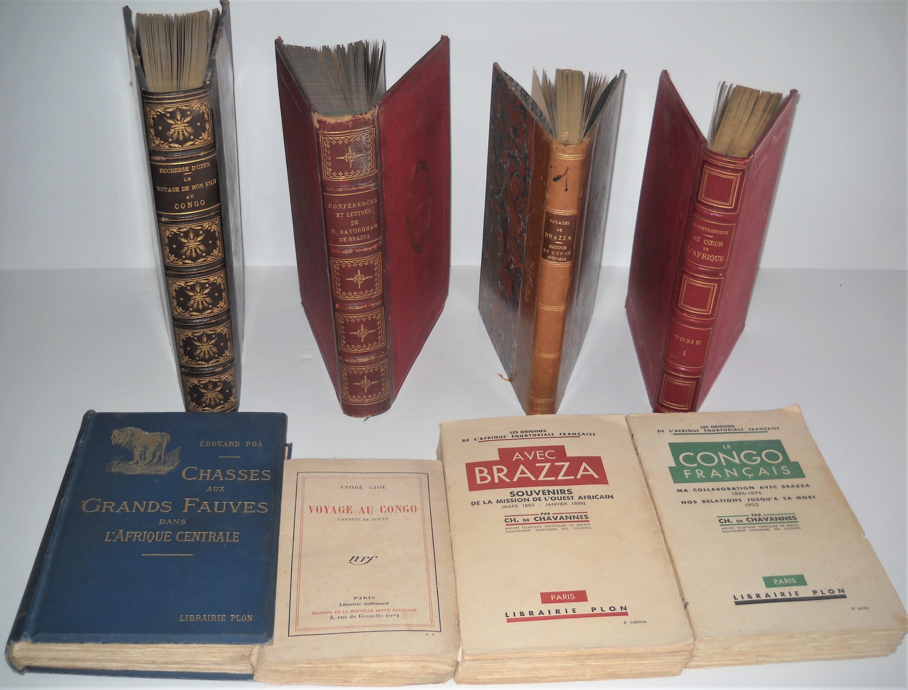 Neuville et Bréard, Les voyages de Savorgnan de Brazza Ogôoué et Congo (1875-1882). Paris, Berger-Levrault, 1884. In-8 demi-basane 303 pp. et carte dépliante.