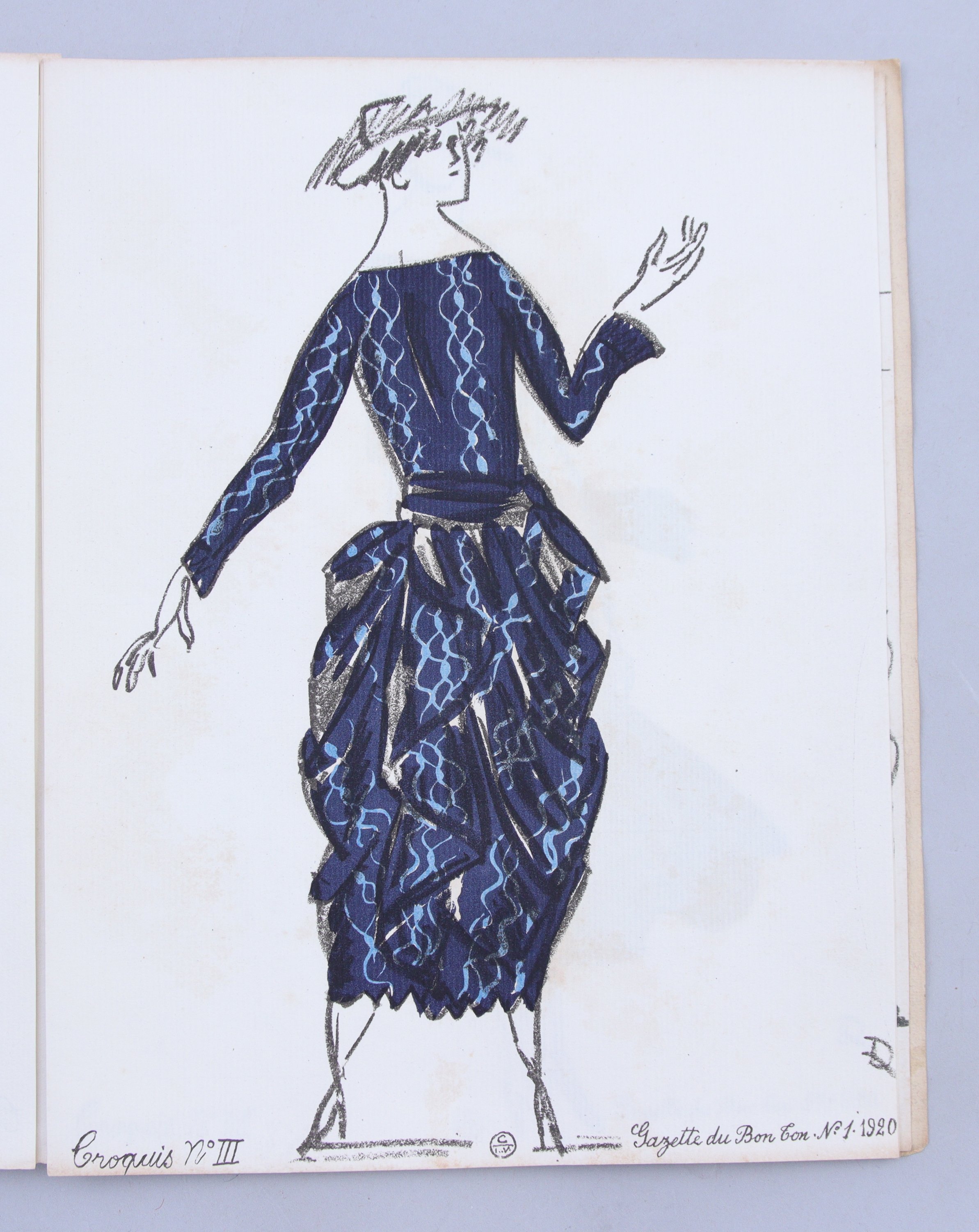 Croquis de mode. Soierie de Bianchini-Férier et Cie dessinées par Raoul Dufy. Gazette du bon ton, n° 1. Février 1920 - I à VIII.