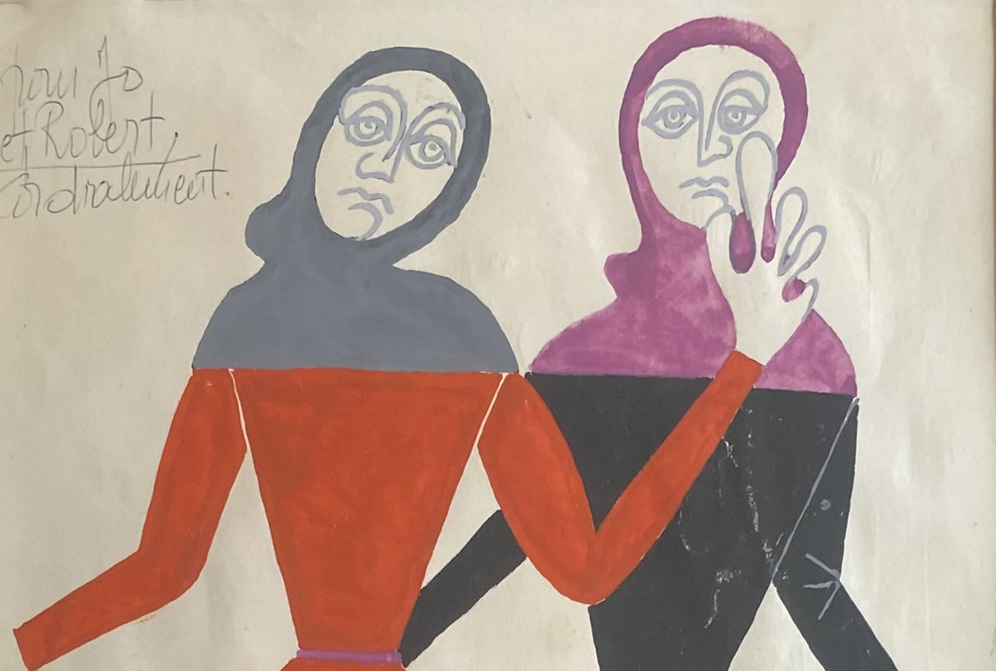 Signée et datée "23.IV.56" en bas à droite et envoi en haut à gauche "Pour Jo / et Robert / Cordialement".