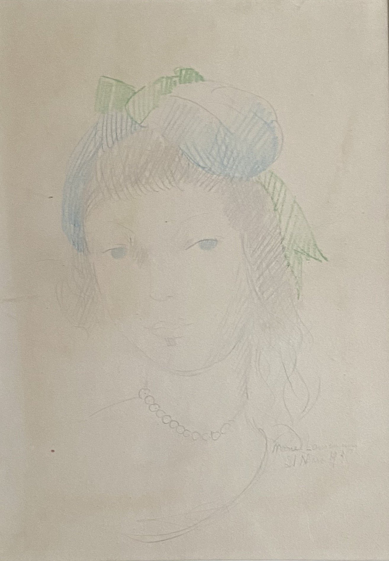 Marie Laurencin (Paris, 1883-1956, Paris)Jeune fille au noeud vert, 1935Crayon...
