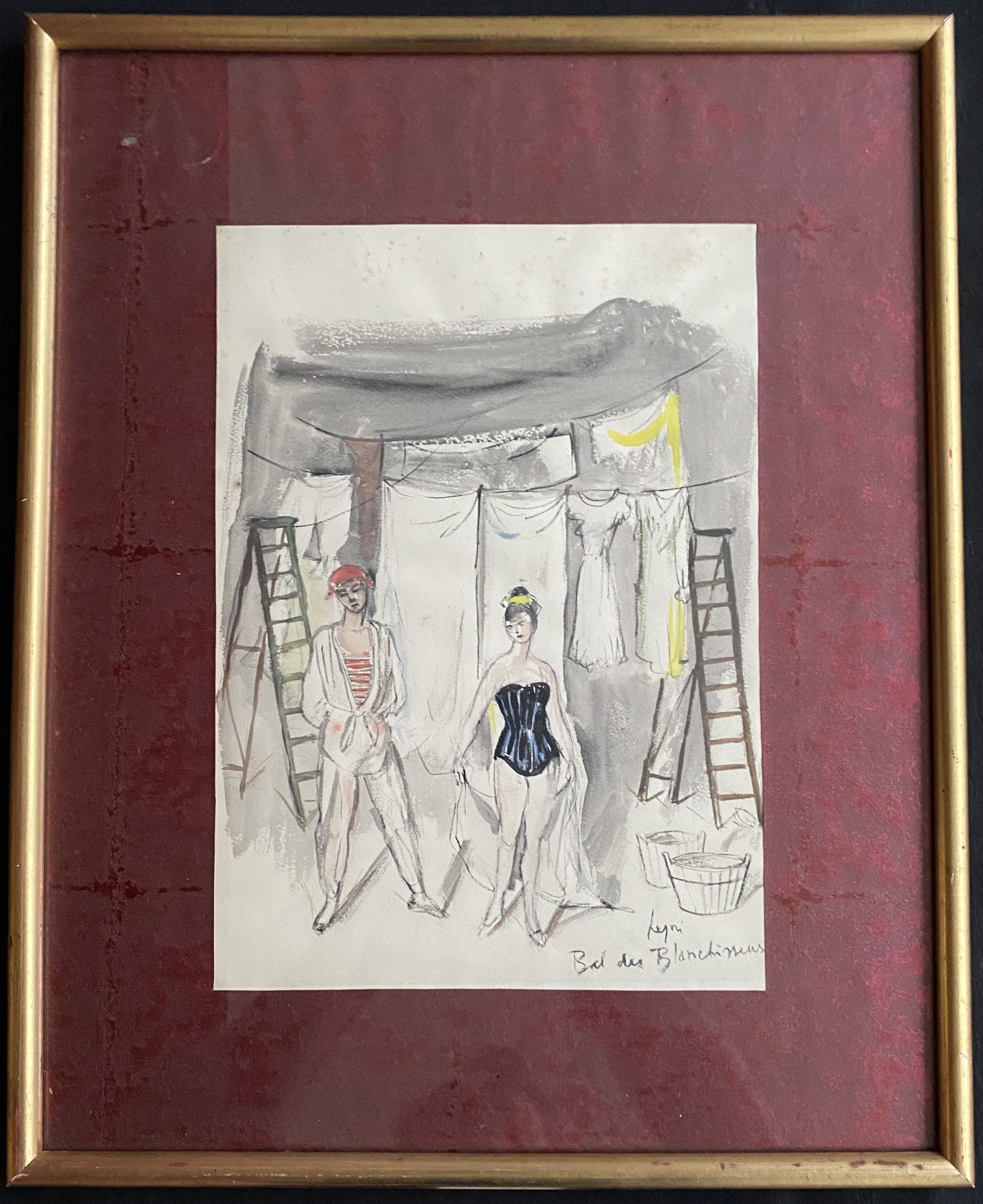 Stanislas Lepri (1905-1980)"Le bal des blanchisseuses"Technique mixte sur papier.Signée et...