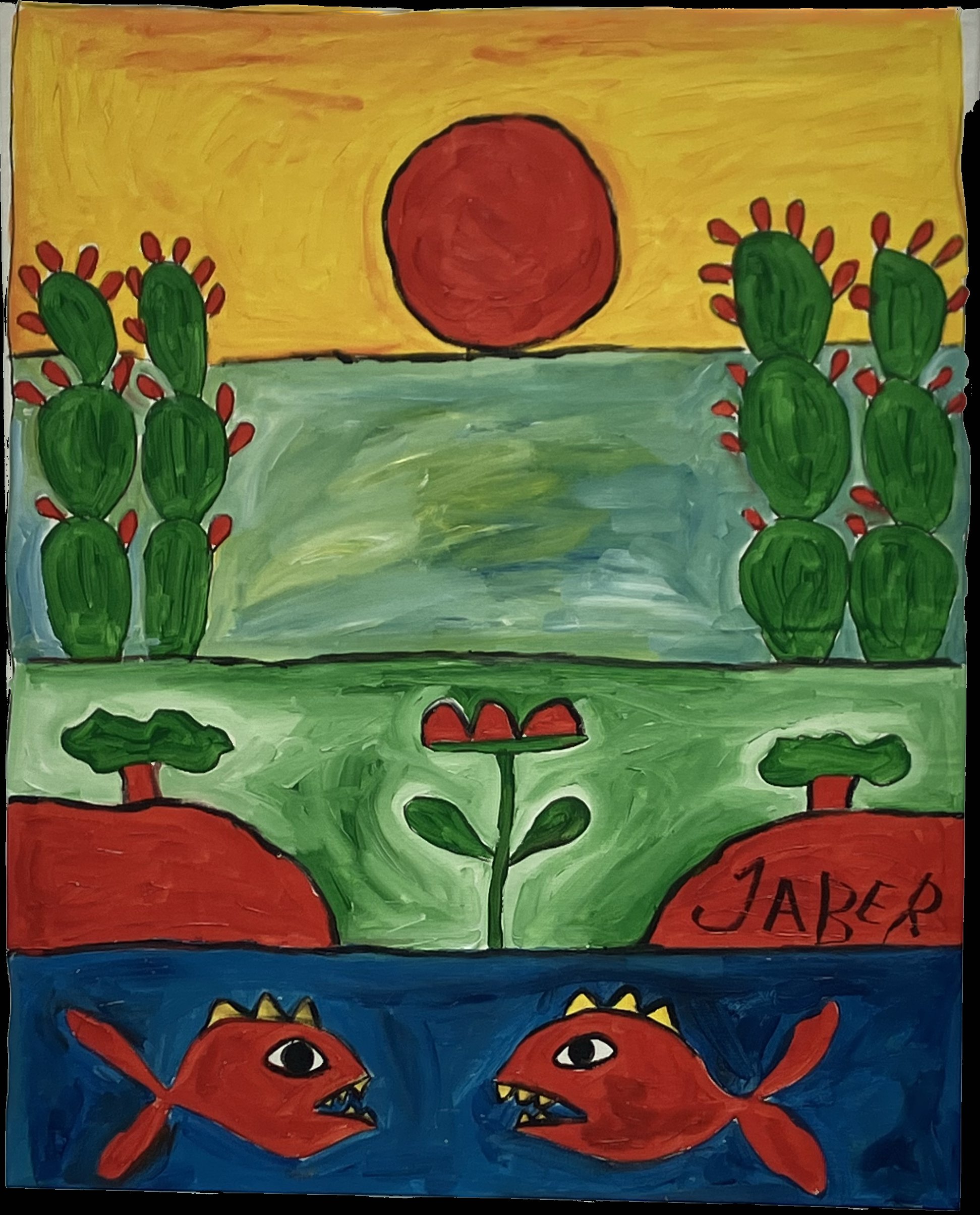 Jaber (Tunisien, 1938-2021), Jaber El Mahjoub, ditLes cactus, 2017	Acrylique sur...