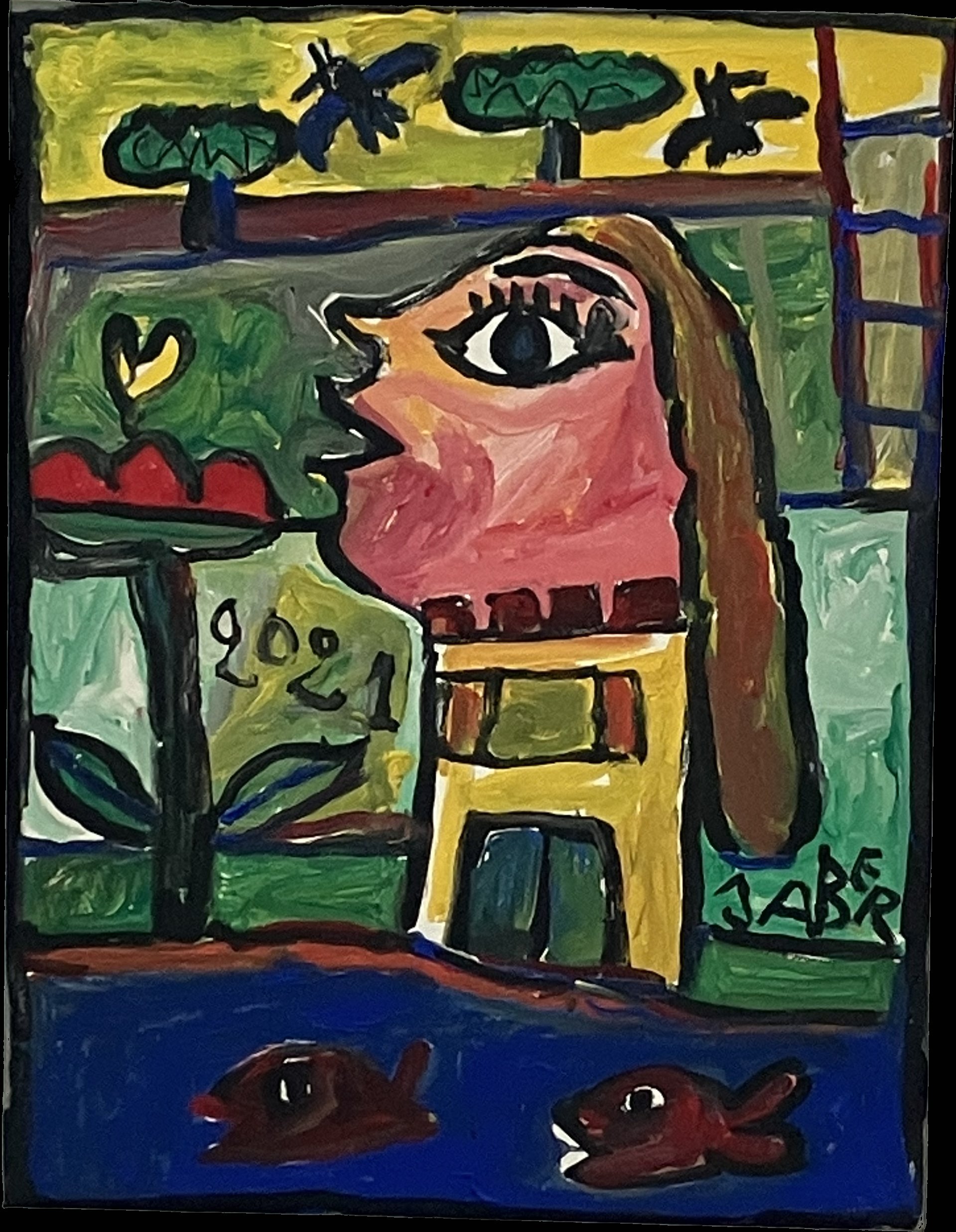 Jaber (Tunisien, 1938-2021), Jaber El Mahjoub, ditFille à la rose,...
