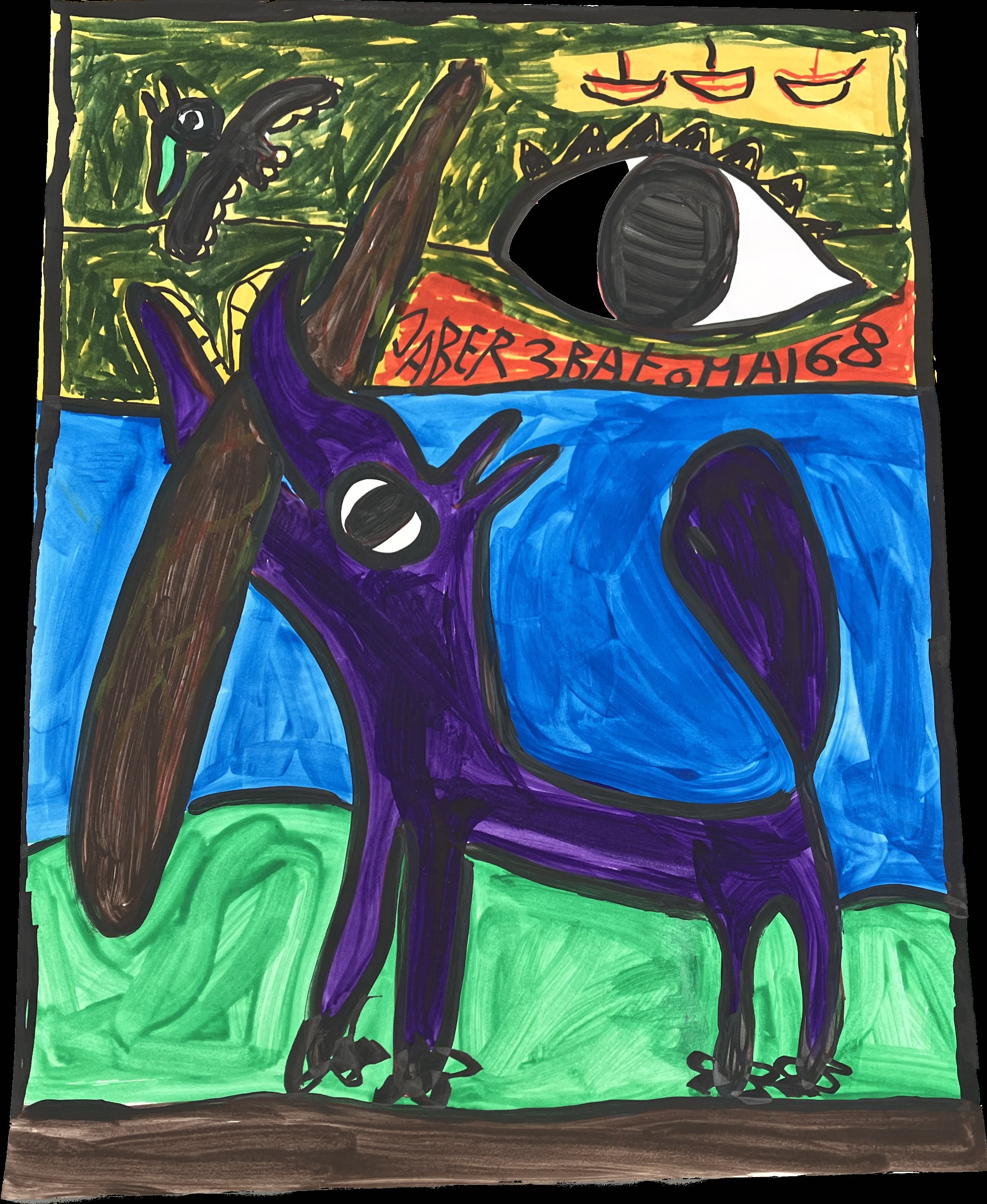 Jaber (Tunisien, 1938-2021), Jaber El Mahjoub, ditChat violet, 2008Acrylique sur...