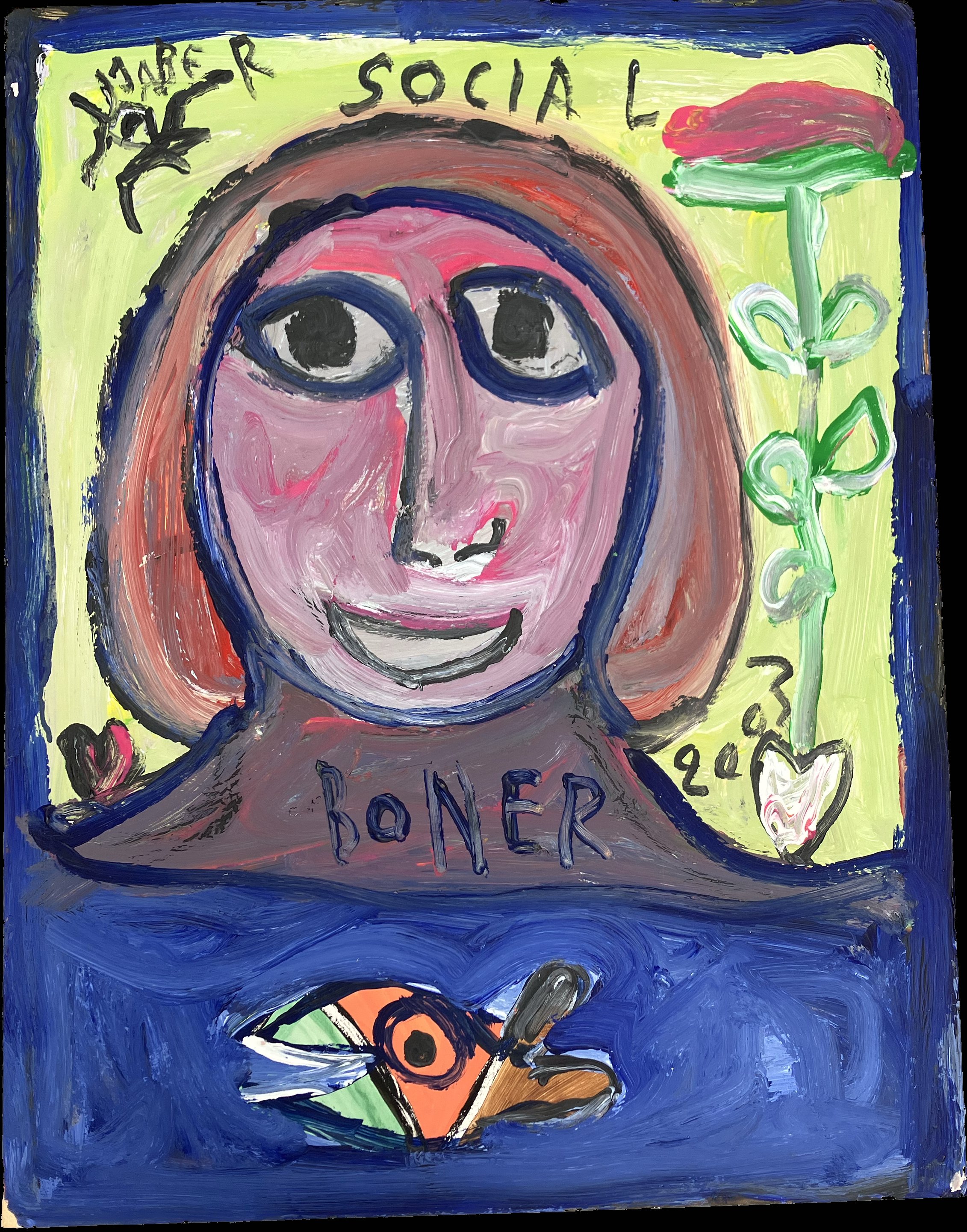 Jaber (Tunisien, 1938-2021), Jaber El Mahjoub, ditSocial bonheur, 2003Acrylique sur...