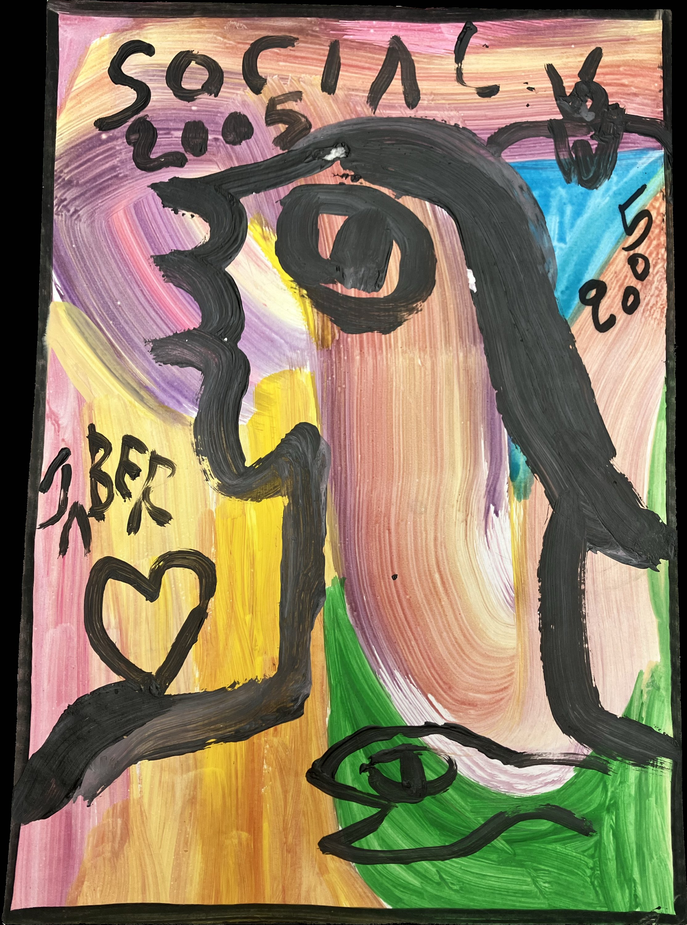 Jaber (Tunisien, 1938-2021), Jaber El Mahjoub, ditPersonnage, 2005Acrylique sur papier...