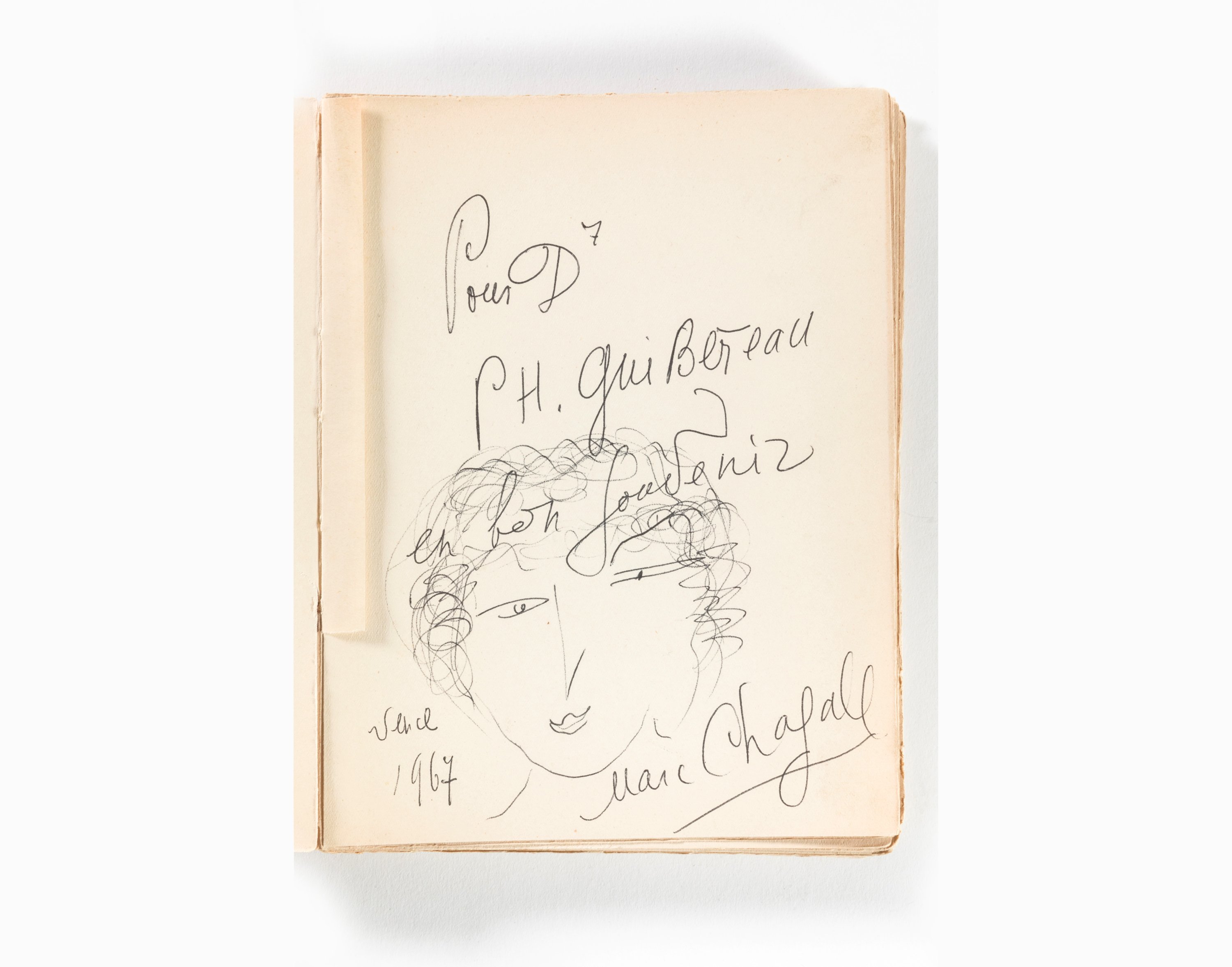 Précieux exemplaire avec un envoi sur la garde volante à Monsieur Guiberteau et enrichi d'un dessin au stylo de Marc Chagall.