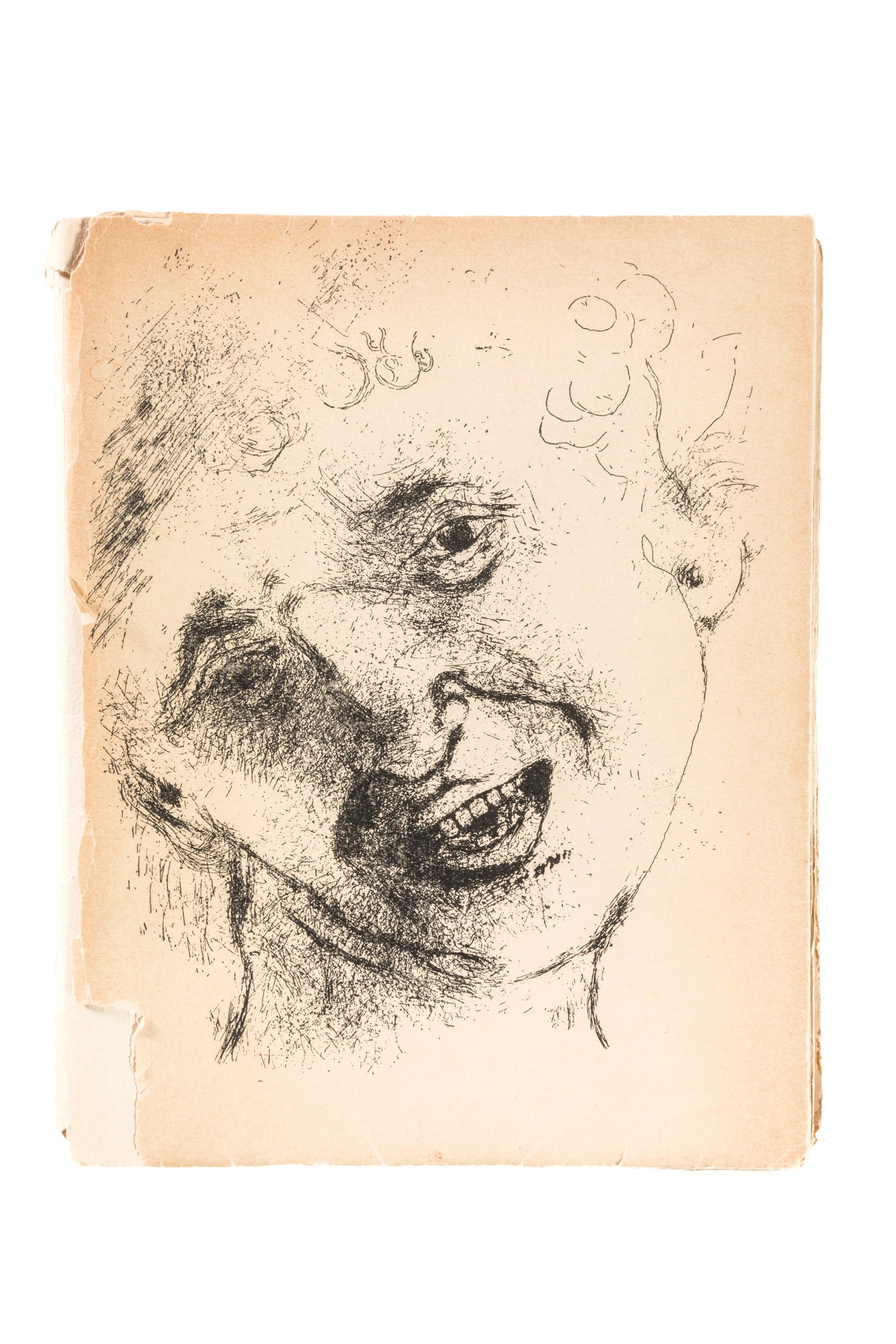 In-8 carré, 135 pages et 6 (feuillets). Tirage limité à 550 exemplaires, celui-ci numéroté 293 imprimé sur papier Alfa. 16 illustrations. Couverture illustrée d'un visage dessiné par Chagall (couture tendant à se défaire, manque le dos).