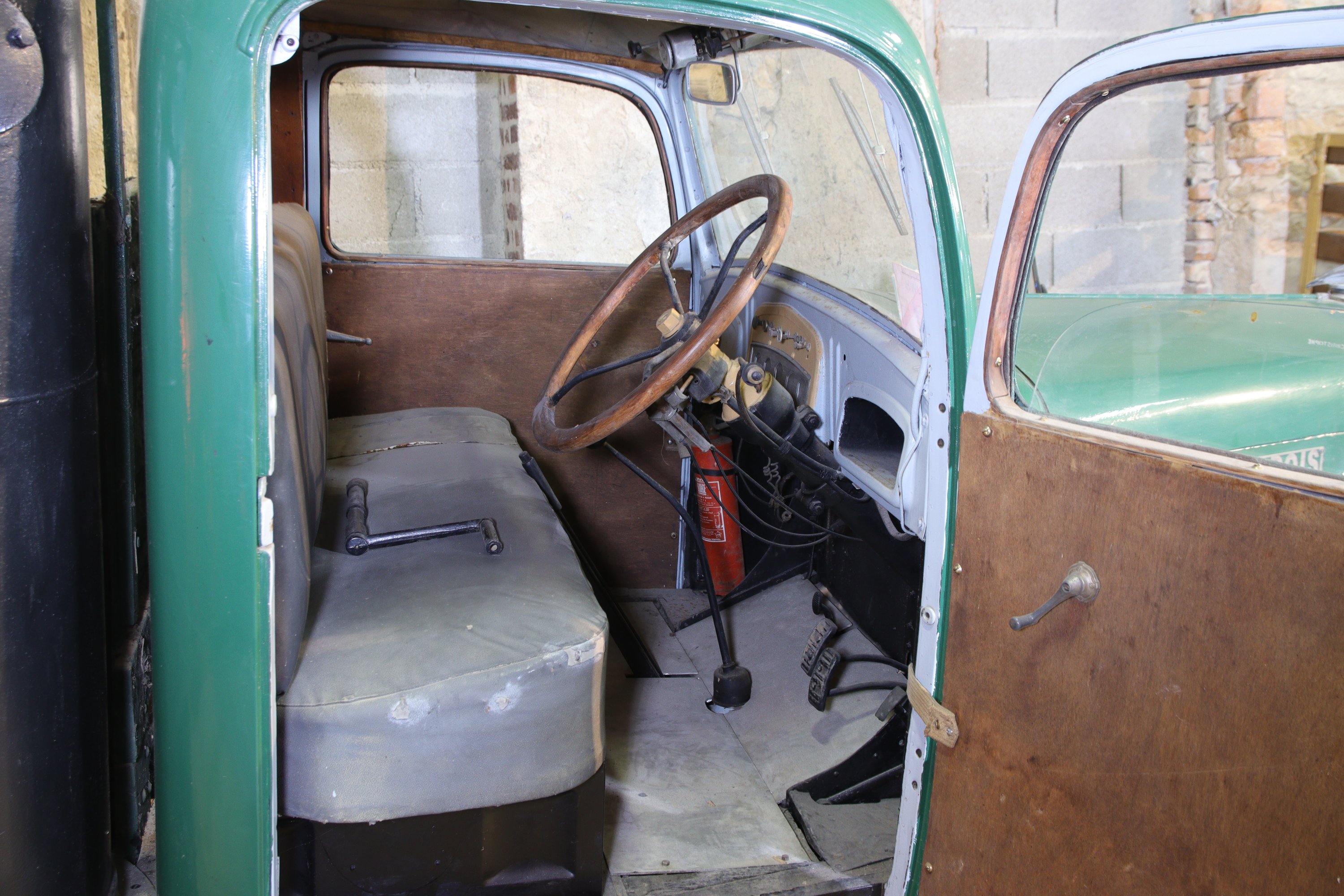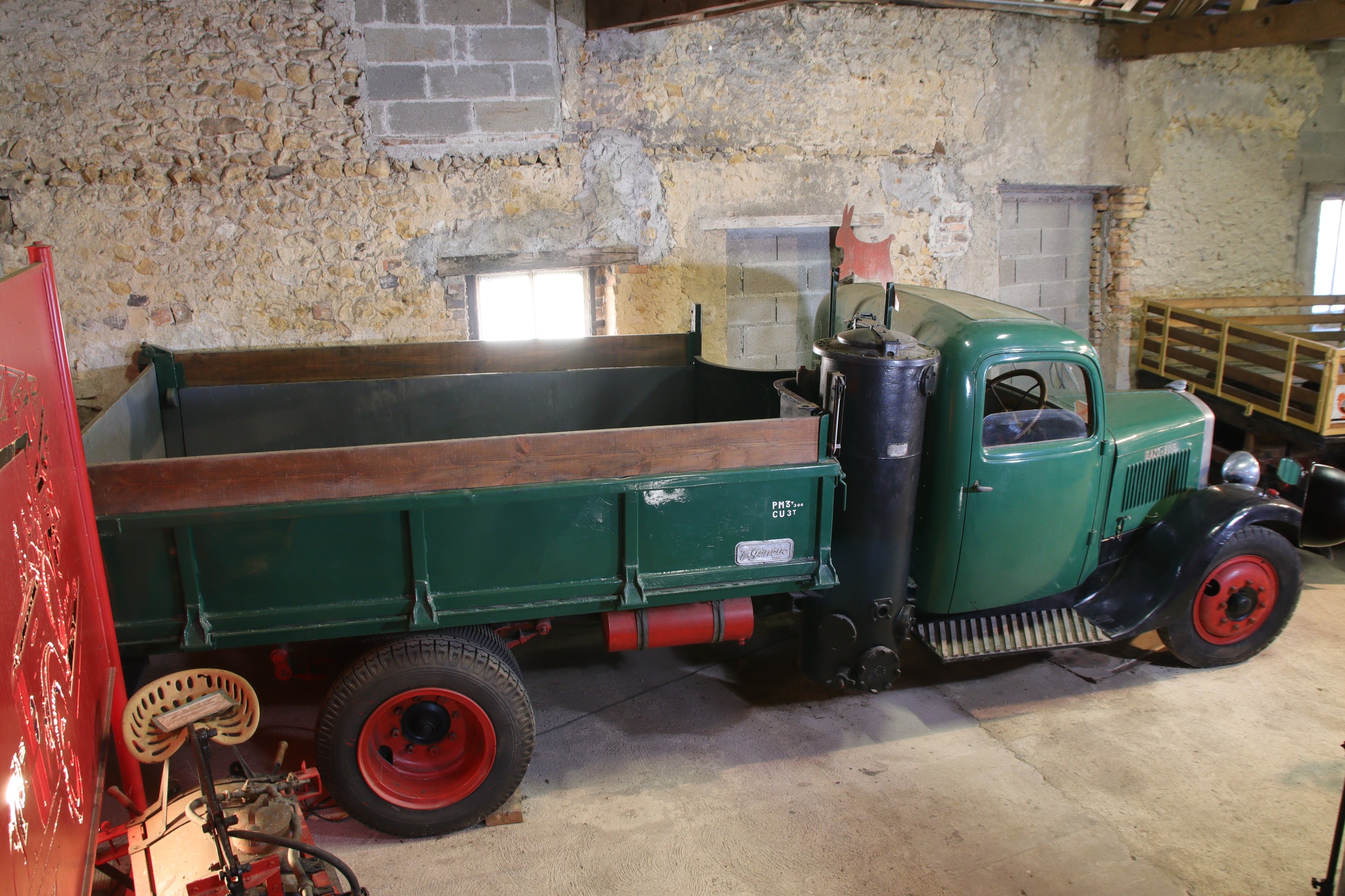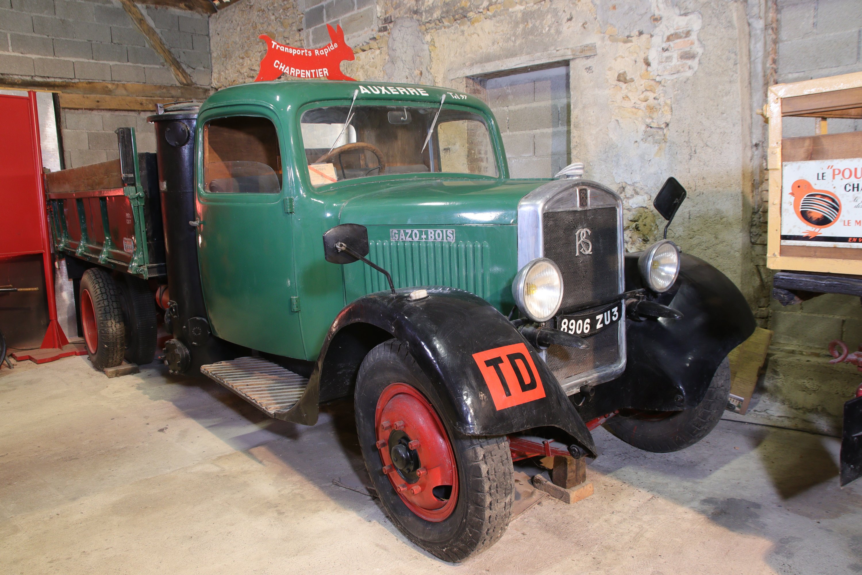 Carrossé en benne acier, ce camion provient dun transporteur dAuxerre (Yonne). Il a été équipé dun gazogène à bois Imbert et a hérité après la guerre dune cellule de cabine plus récente.