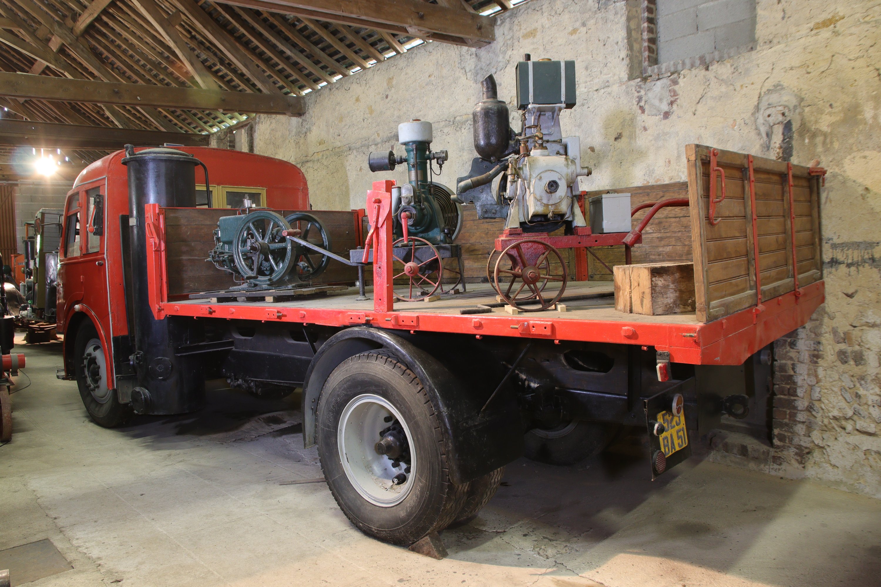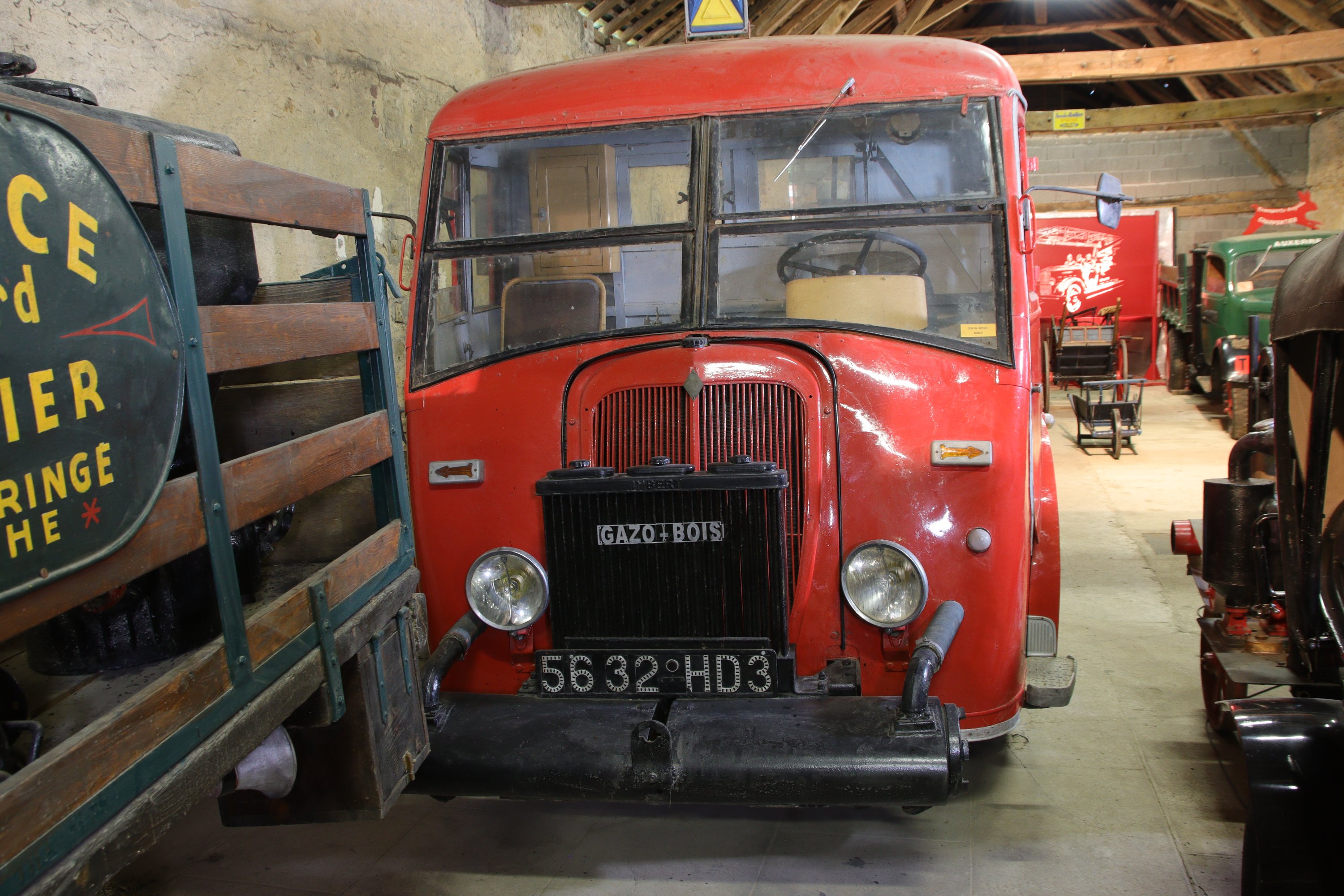 Modèle de 6 tonnes de charge utile équipé à lorigine dun moteur quatre cylindres à essence. Livré à larmée, comme en témoignent ses roues à disque. Racheté par un transporteur à la Libération, a fini sa carrière chez un forain de la Marne. Restauré et équipé dun gazogène à bois Imbert avec radiateur additionnel devant la calandre, comme de nombreux exemplaires du même type pendant et après la Seconde Guerre mondiale.
