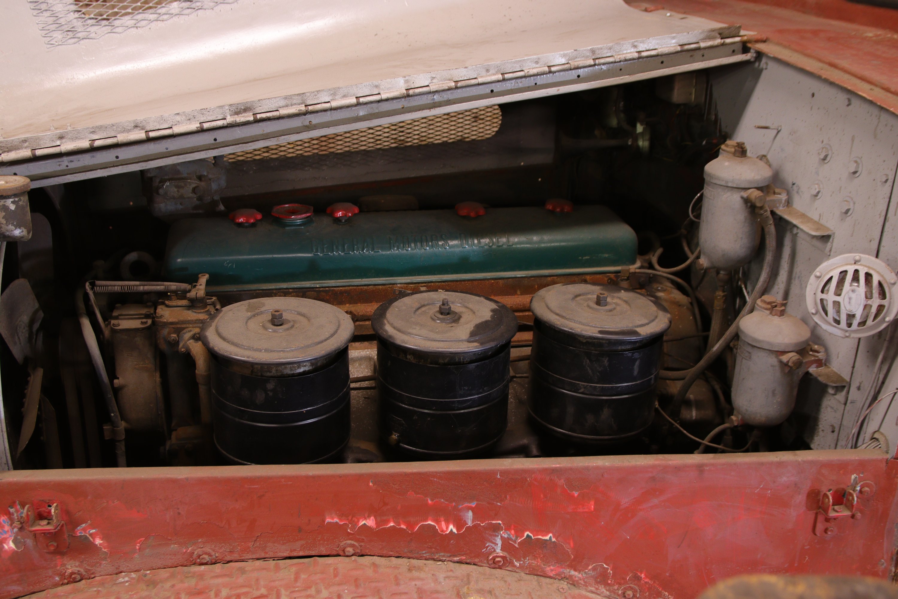 Modèle transformé, équipé dun moteur six cylindres diesel deux temps GM 6.71 avec PTC de 26 tonnes.