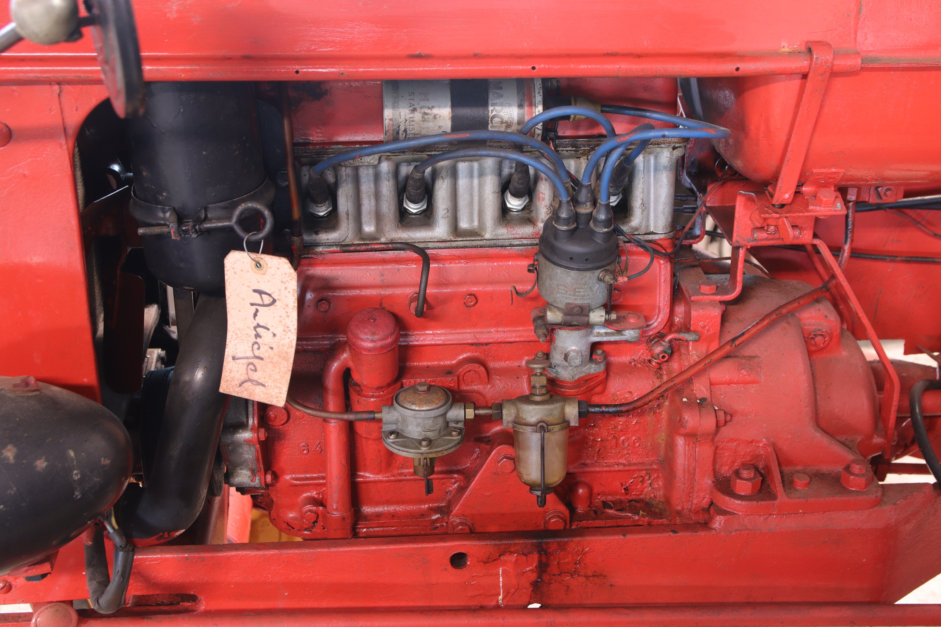 Fabriqué de 1952 à 1957, le Massey-Harris Pony 812 est propulsé par un moteur quatre cylindres à essence Simca de 1221 cm3 et 16 chevaux. Cest le plus petit tracteur de la marque, à lépoque.