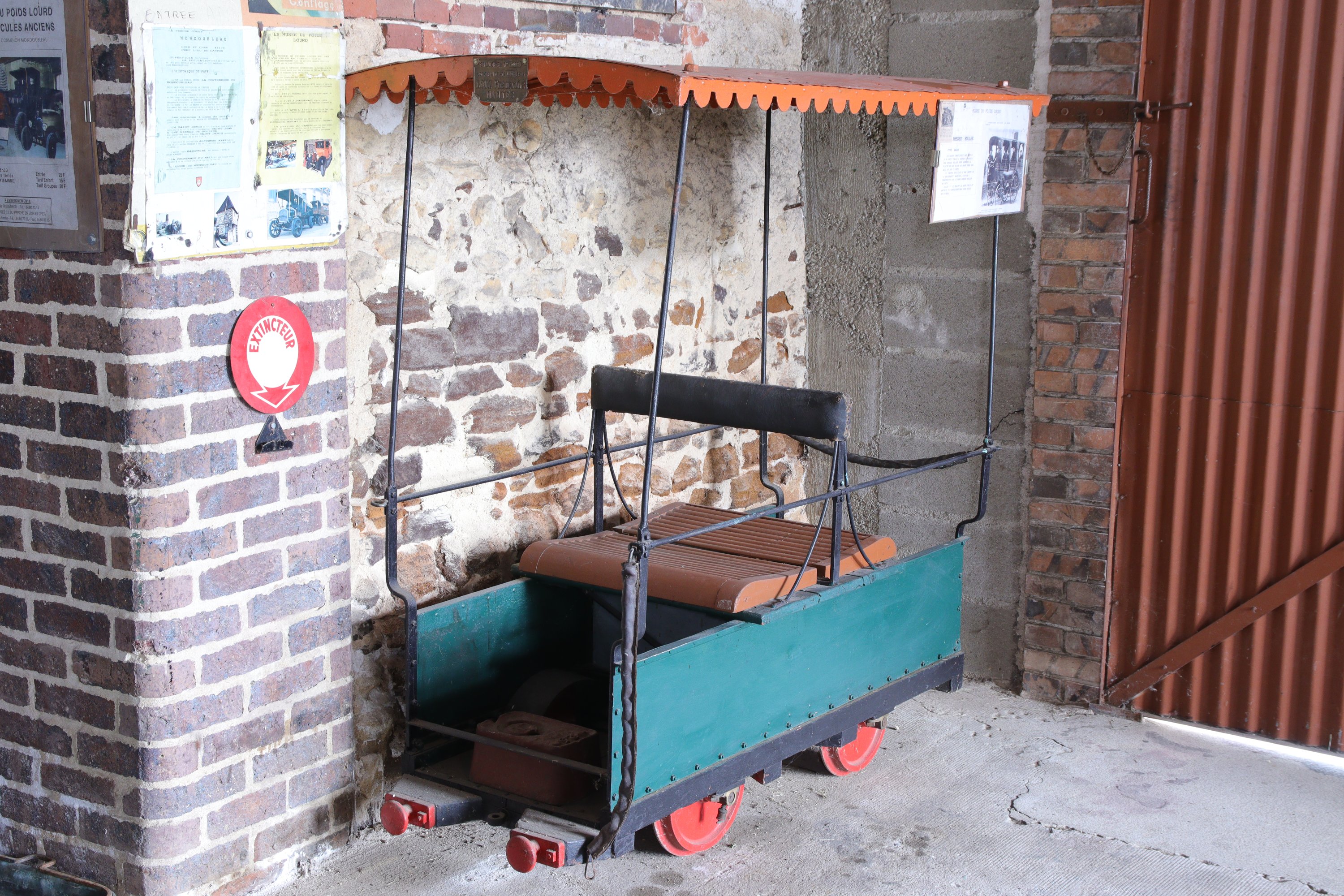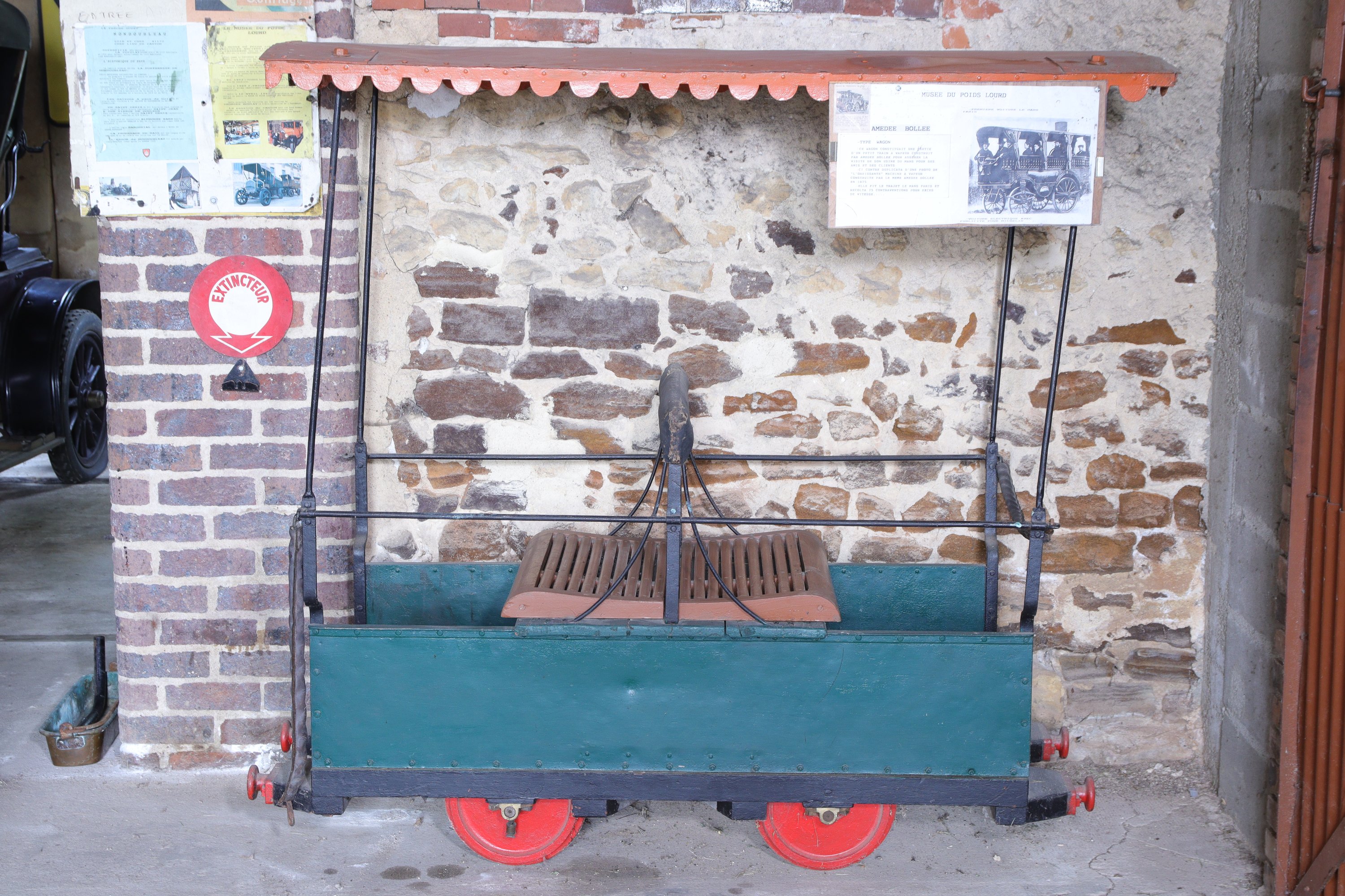 Ce wagon faisait partie d'un petit train à vapeur construit par Amédée Bollée, fils de l'inventeur français et pionnier de lautomobile. Tracté par une locomotive, il était conçu pour rouler sur une voie circulaire d'une vingtaine de mètres.