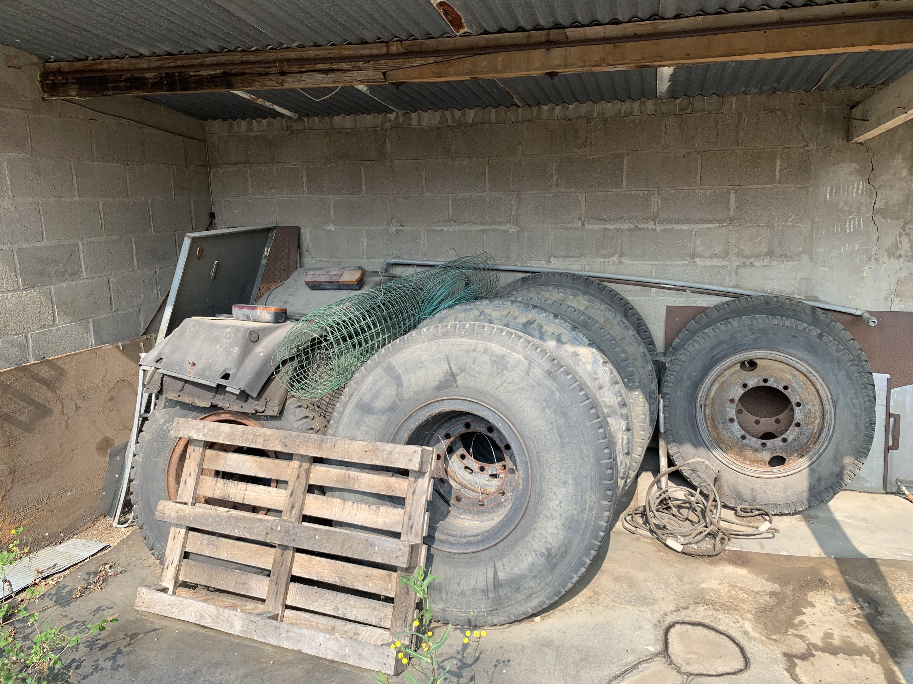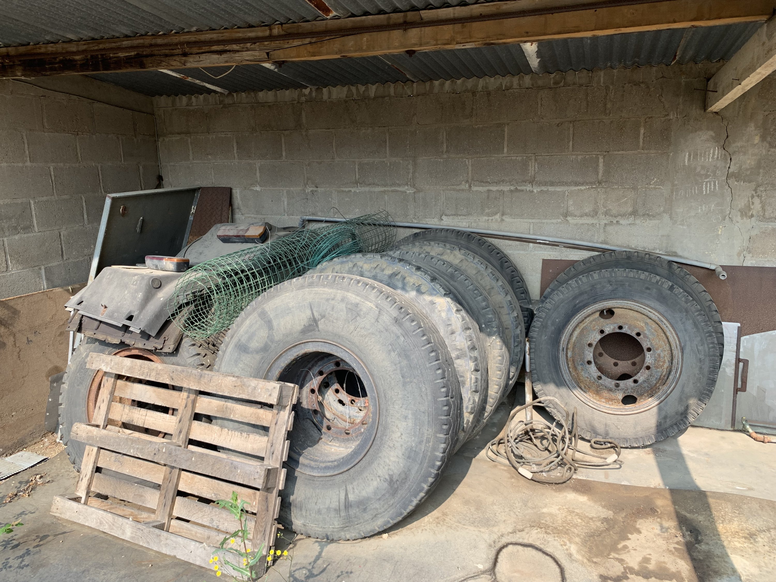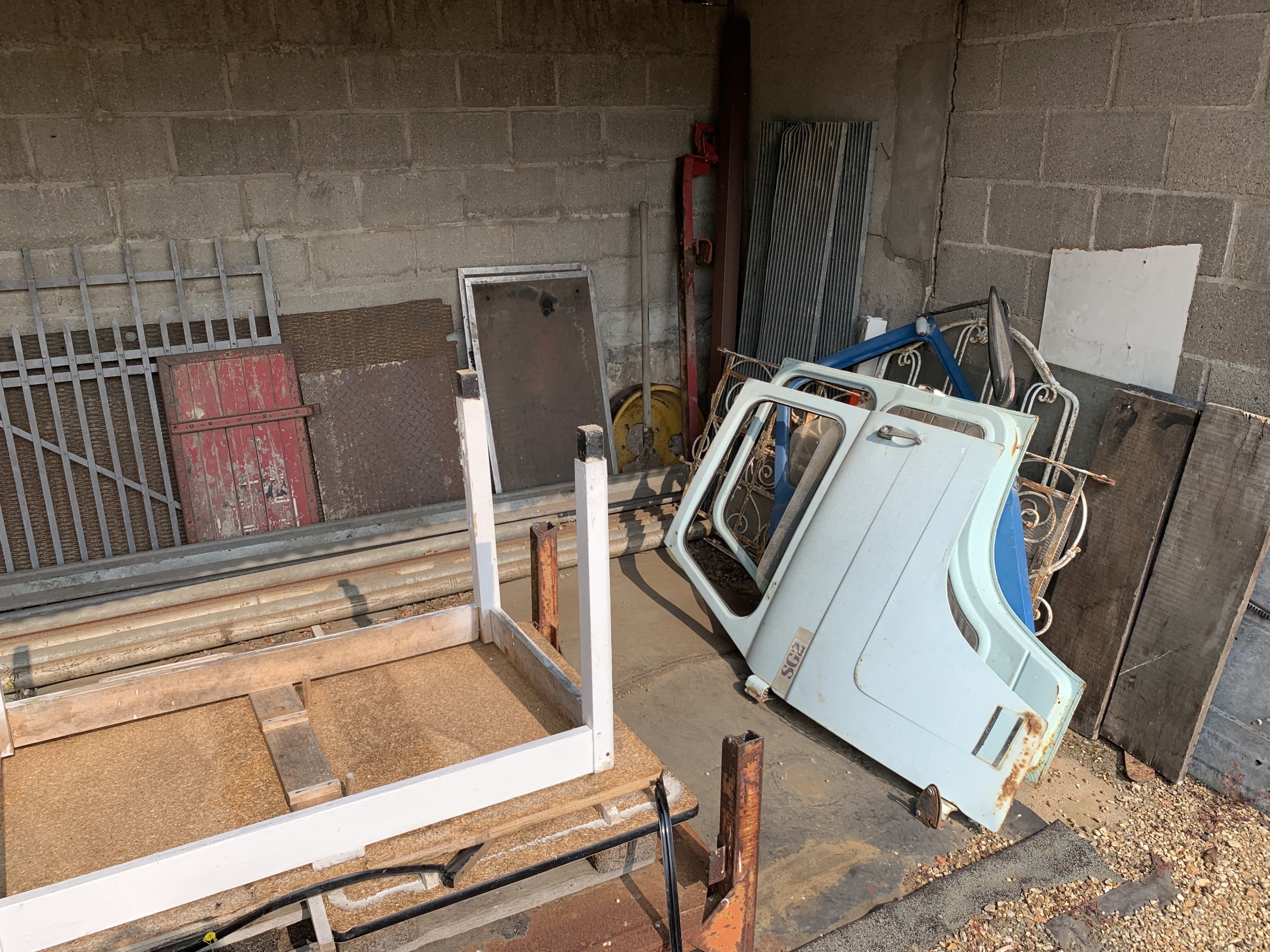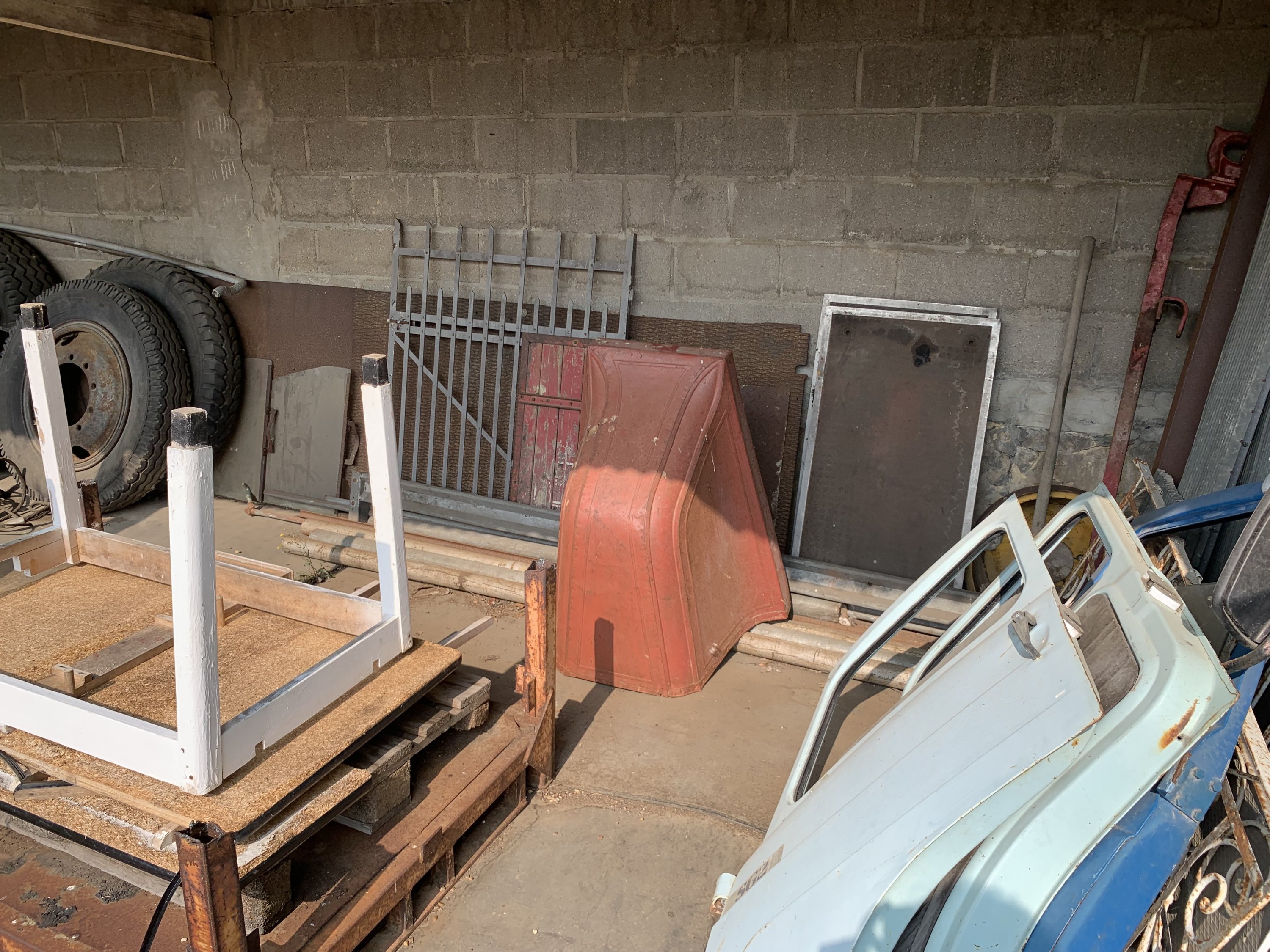En un seul lot: stock de pièces automobiles, dont éléments de carrosserie, vélos et pneus.