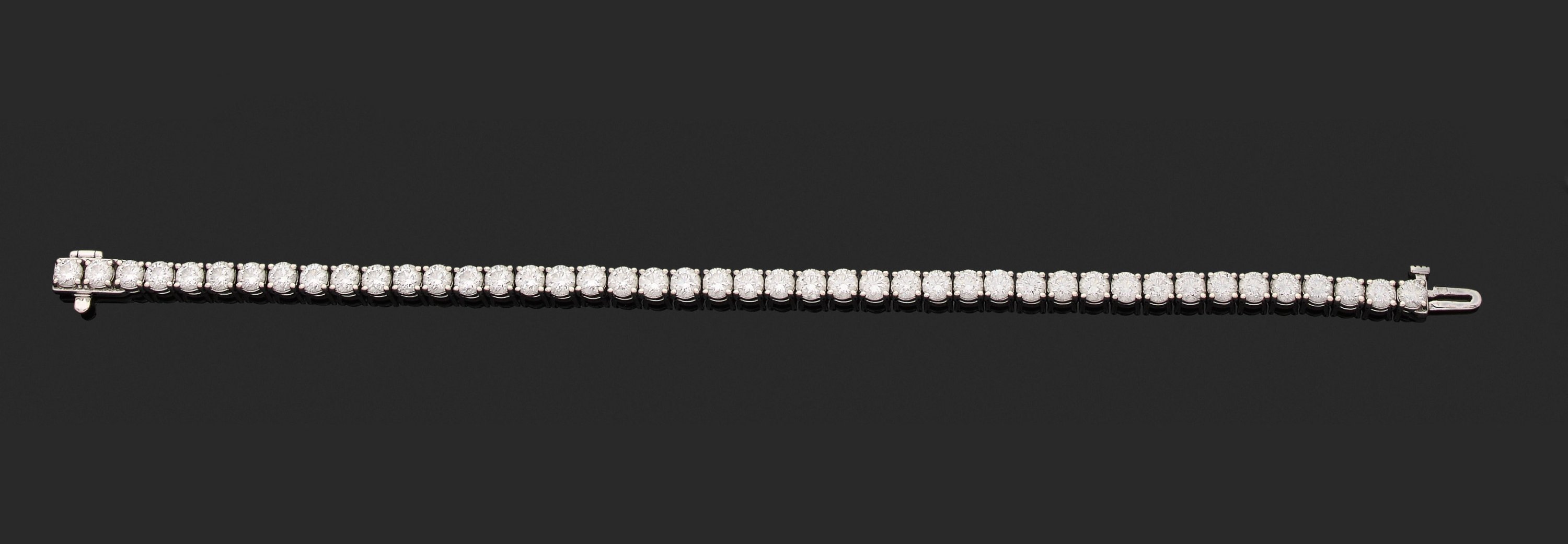 en or gris 585 millièmes entièrement serti de quarante-quatre diamants ronds de taille brillant.