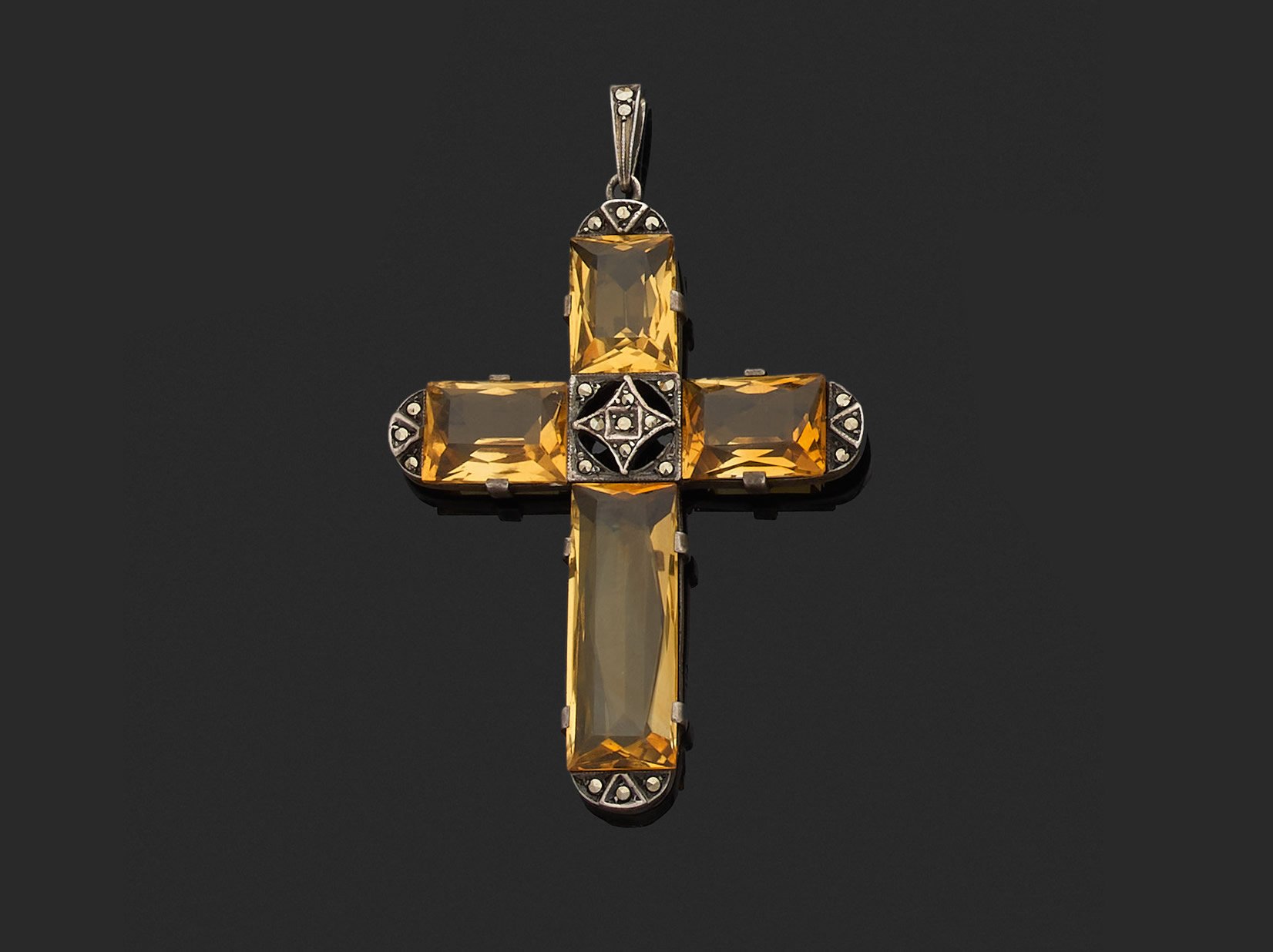 Pendentif croix en argent 925 millièmes ajourée et ornée de...