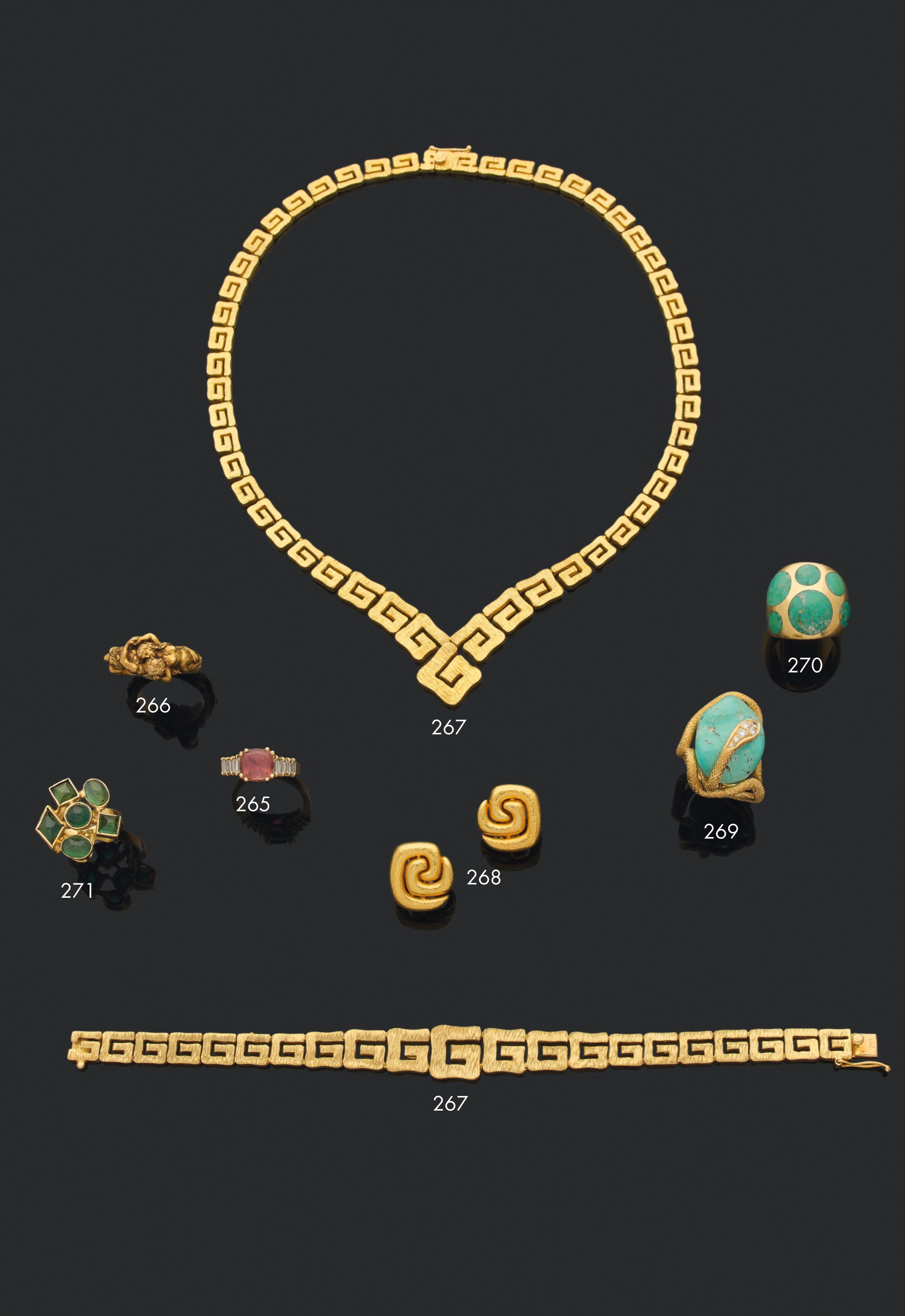 en or jaune 750 millièmes chacune gravée à décor d'enroulement.