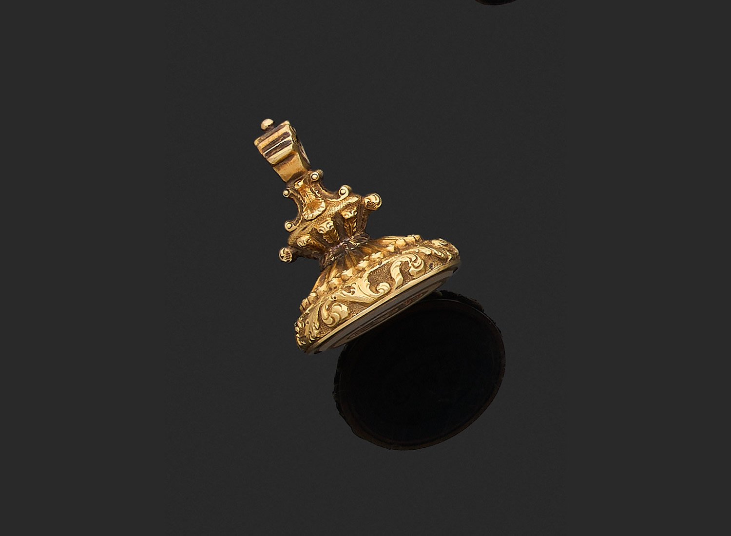 Cachet en or jaune 585 millièmes gravé à décor de...