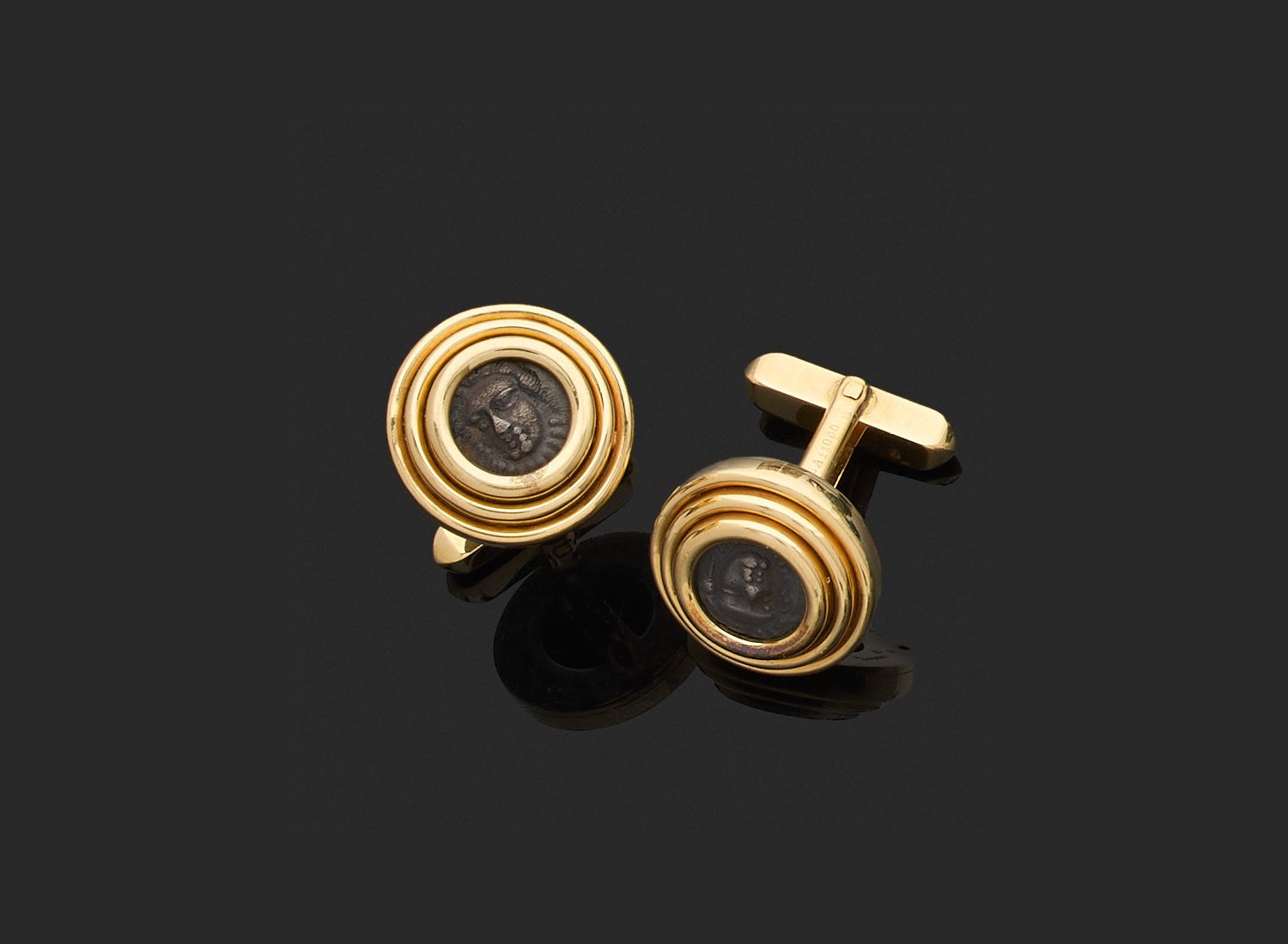 Bulgari Paire de boutons de manchettes en or jaune 750...