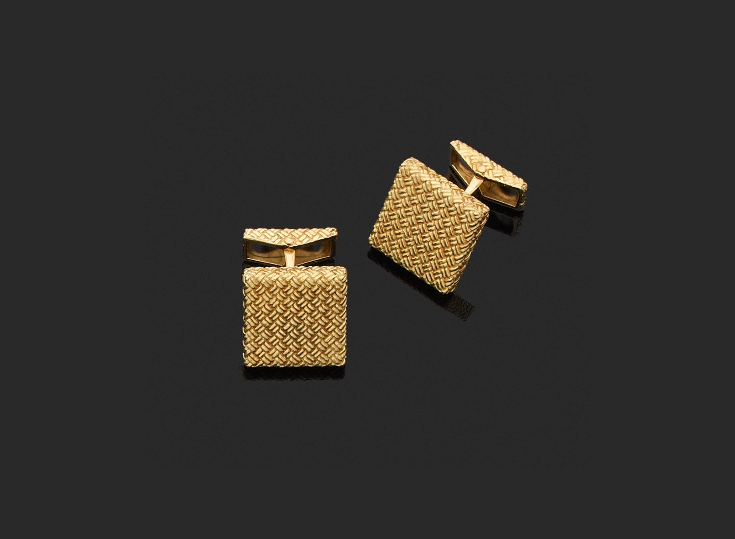 en or jaune 750 millièmes, les extrémités de forme rectangulaire et carré en or gravé à décor de tressage.