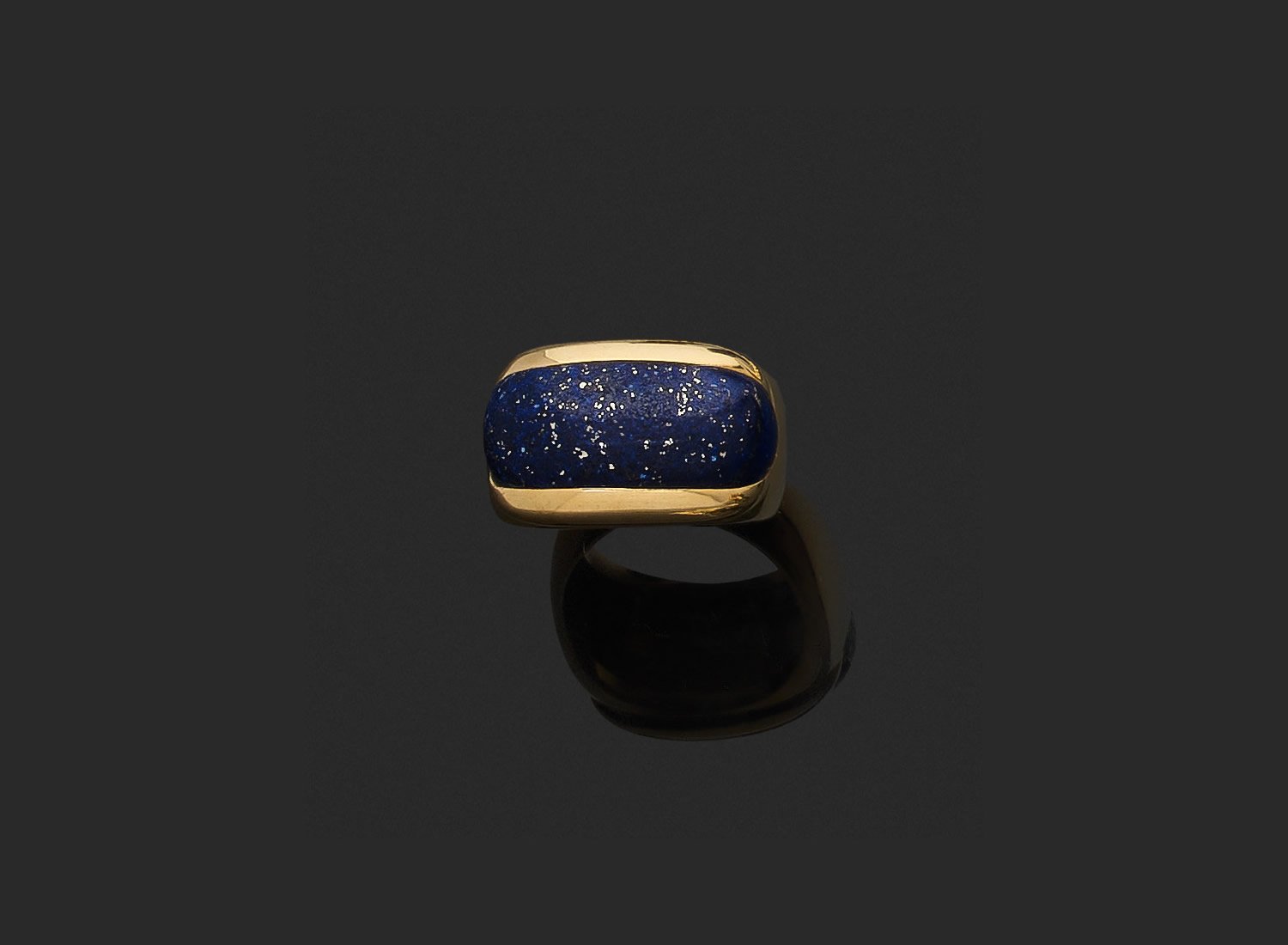 en or jaune 750 millièmes, le centre orné d'un motif en lapis-lazuli teinté.