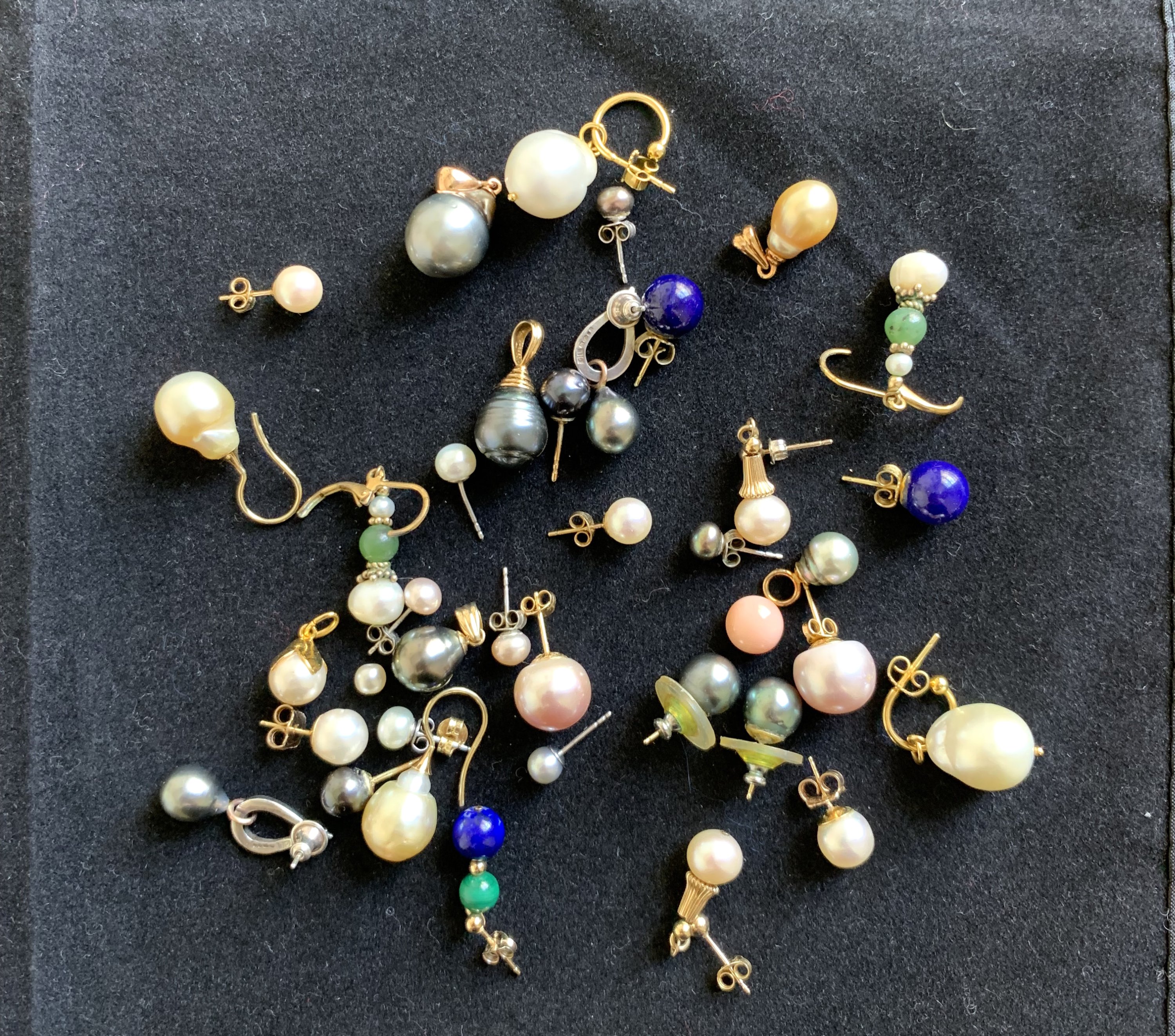 de perles de cultures et perles d'imitation, les montures en métal comprenant: colliers, sautoirs, bracelet, pendentifs et paires de boucles d'oreilles.