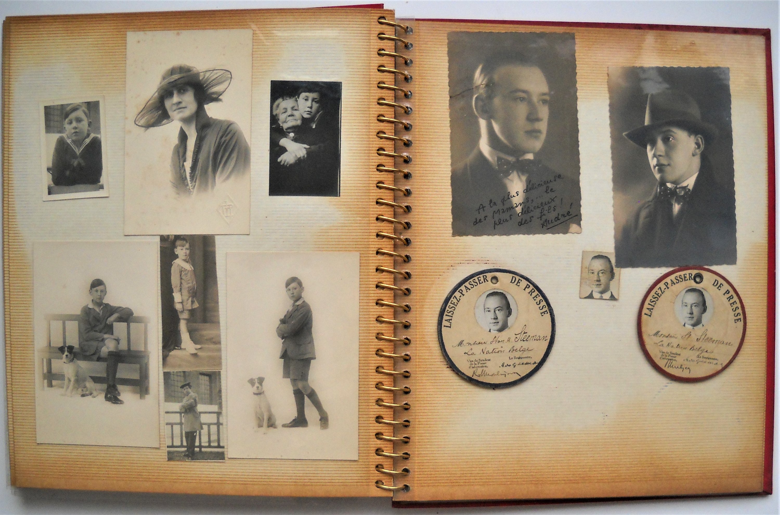 Album, 32 x 27 cm, denv. 100 photographies, formats divers, vers 1890-1920, retraçant la jeunesse de S.A. Steeman: portraits de ses parents et de ses grands-parents, Steeman et Orban, S.A. enfant et adolescent, cartes de presse ;