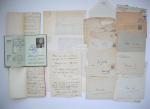 2 petits carnets manuscrits in-12, env. 100 pp., lun contenant des poèmes écrits par S.A. Steeman en 1923, lautre dédié à la femme et à lamour, contenant des citations écrites en 1924-1925 ; son passeport ; « Mémoires dun amnésique », 2 pages tapuscrites in-4 dans lesquelles Steeman évoque ses parents, leur rencontre, leur divorce, ses grands-parents ;