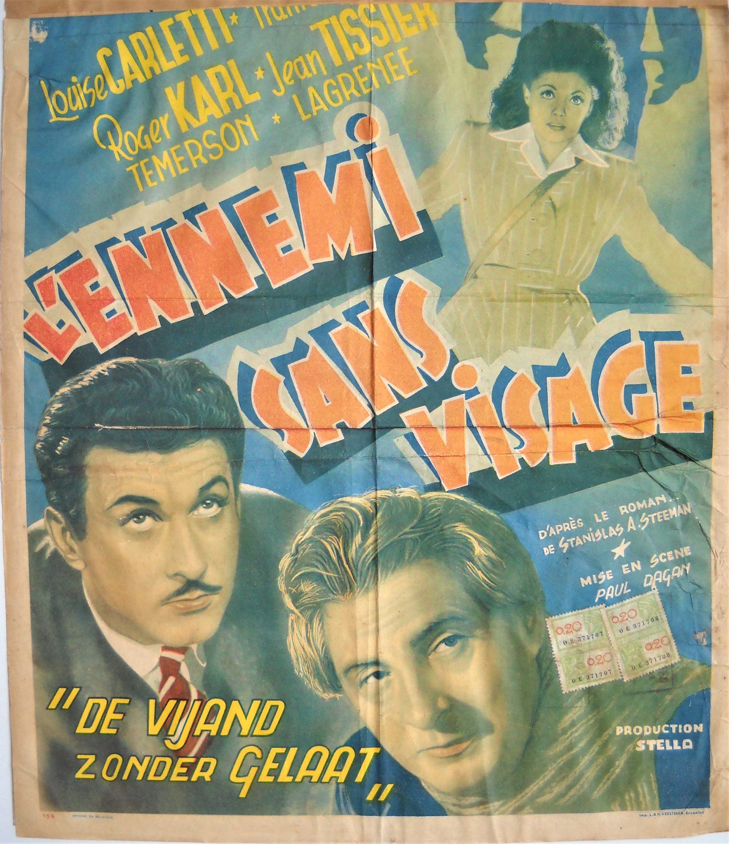 « LEnnemi sans visage » par Robert Paul Dagan, 1946, 2 affiches, 80 x 60 cm (sous verre) ; 42 x 35,5 cm.