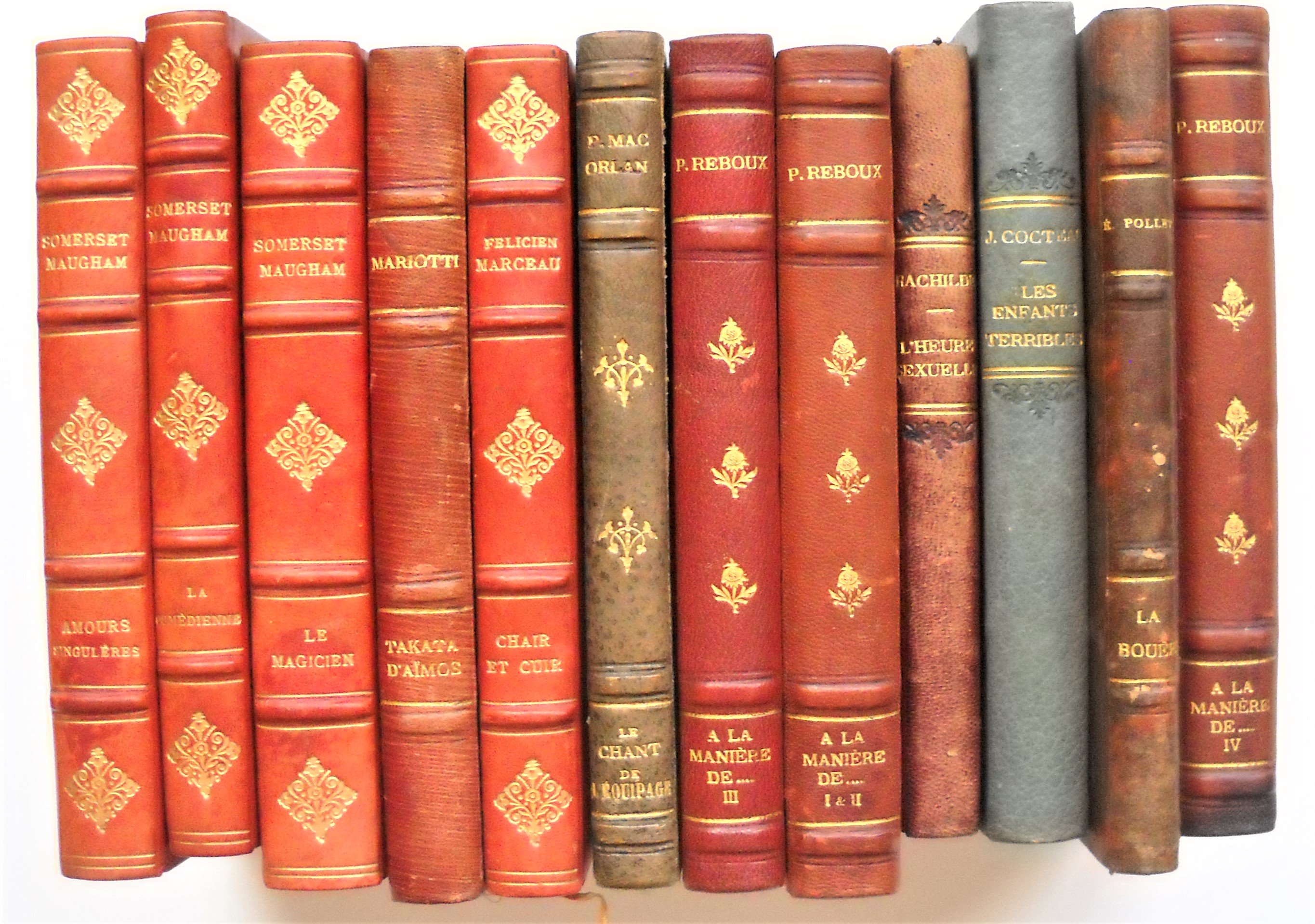 MAUGHAM William Somerset, 4 vol.: Amours singulières, Paris, Les édit. de France, 1934, 242 pp. in-8, envoi autographe signé ; La ronde de lamour, Paris, Les édit. de France, 1937, 231 pp. in-8 (sans couverture), envoi autographe signé ; Le magicien, Paris, Les édit. de France, 1938, 218 pp. in-8, envoi autographe signé ; La comédienne, Monaco, Editions du Rocher, 1951, 233 pp. in-8, envoi autographe signé ;