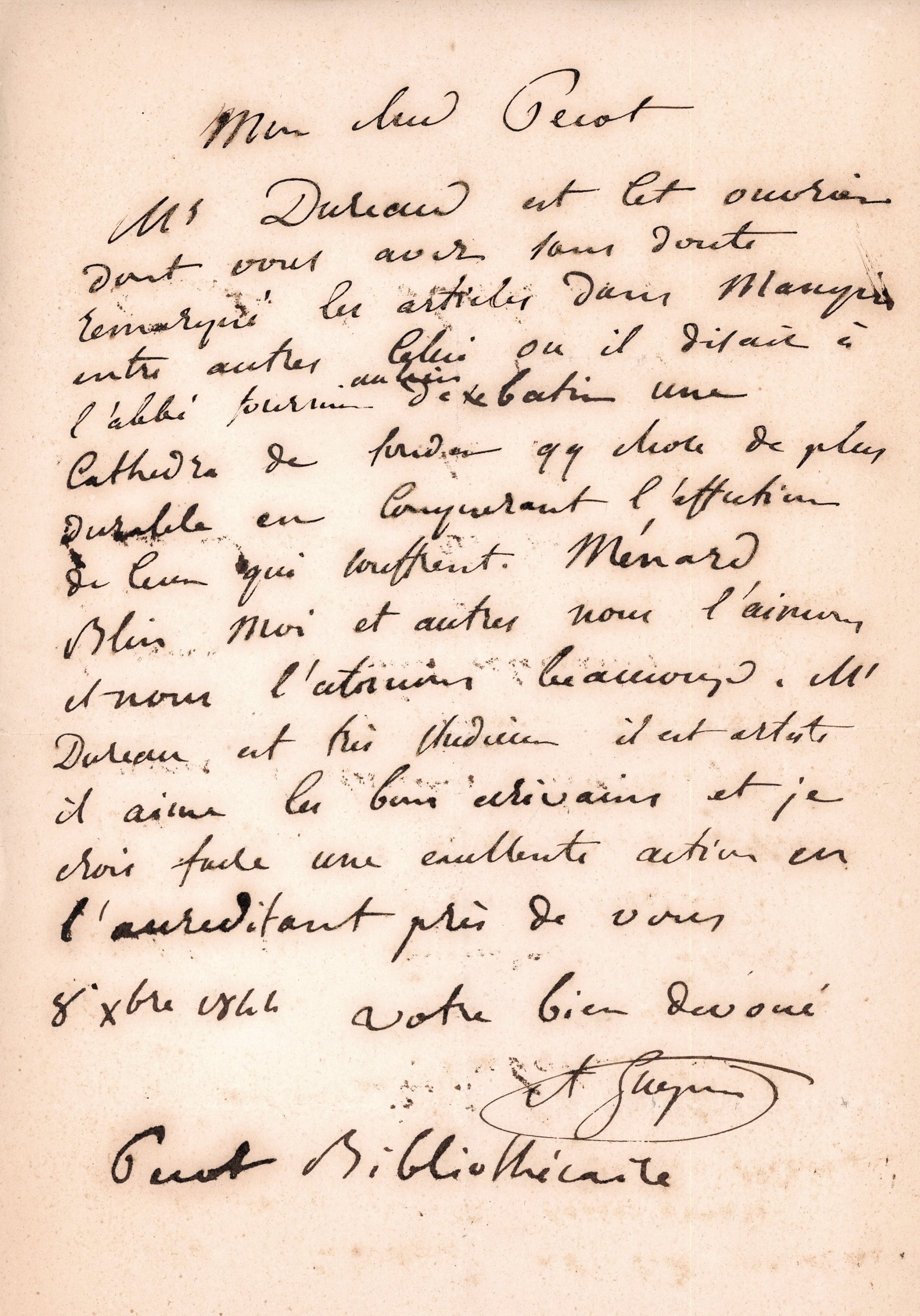 Important lot de + de 260 pièces manuscrites , principalement de la 1ère moitié du XIXe siècle ; en provenance de la collection Armand Guéraud, libraire-éditeur nantais.