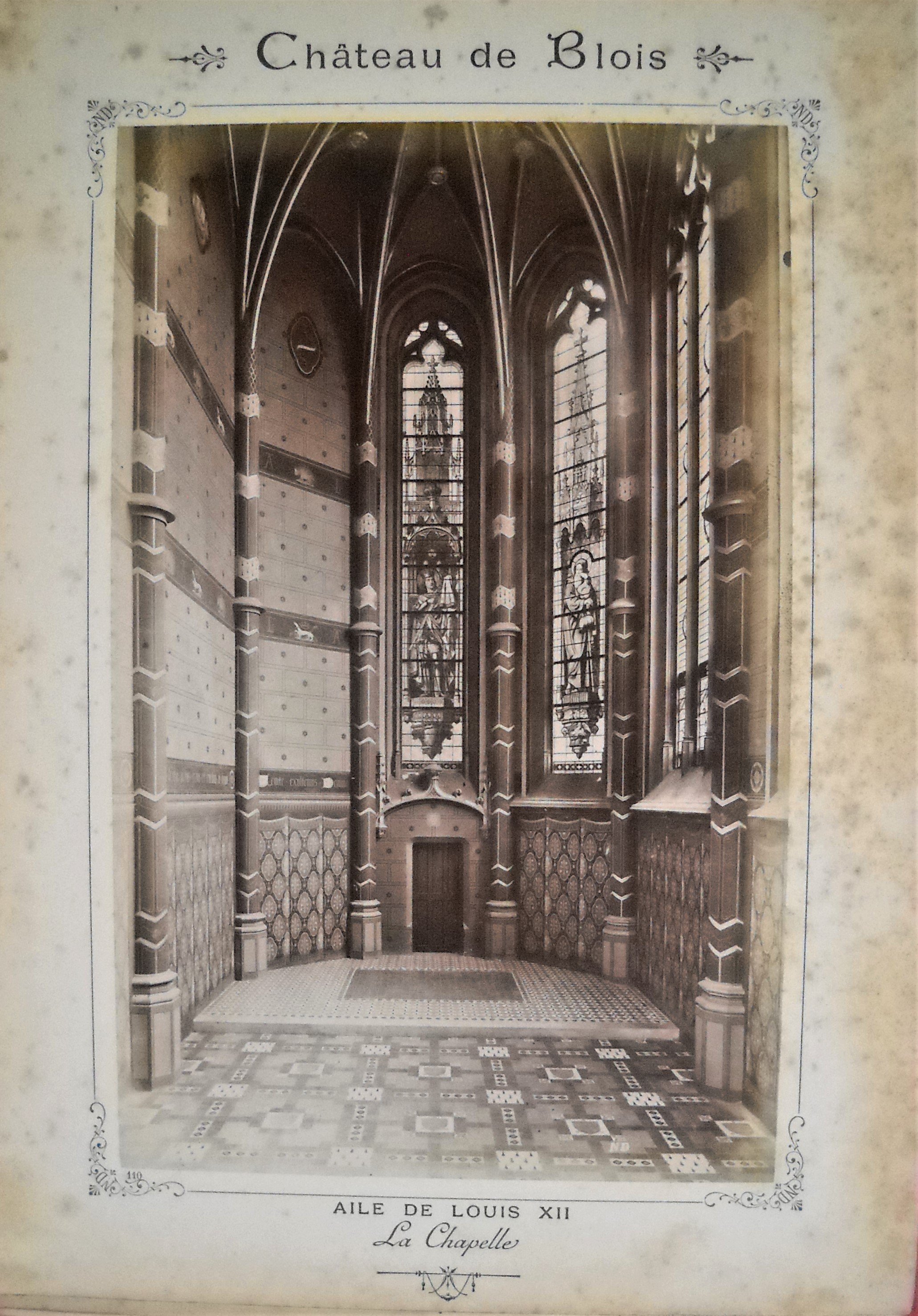 JOINT: Château de Blois, album à litalienne de 24 tirages photographiques (env. 12 x 20 cm) contrecollés sur carton fort, légendes et encadrés imprimés, fin du XIXe siècle (nombreuses rousseurs).