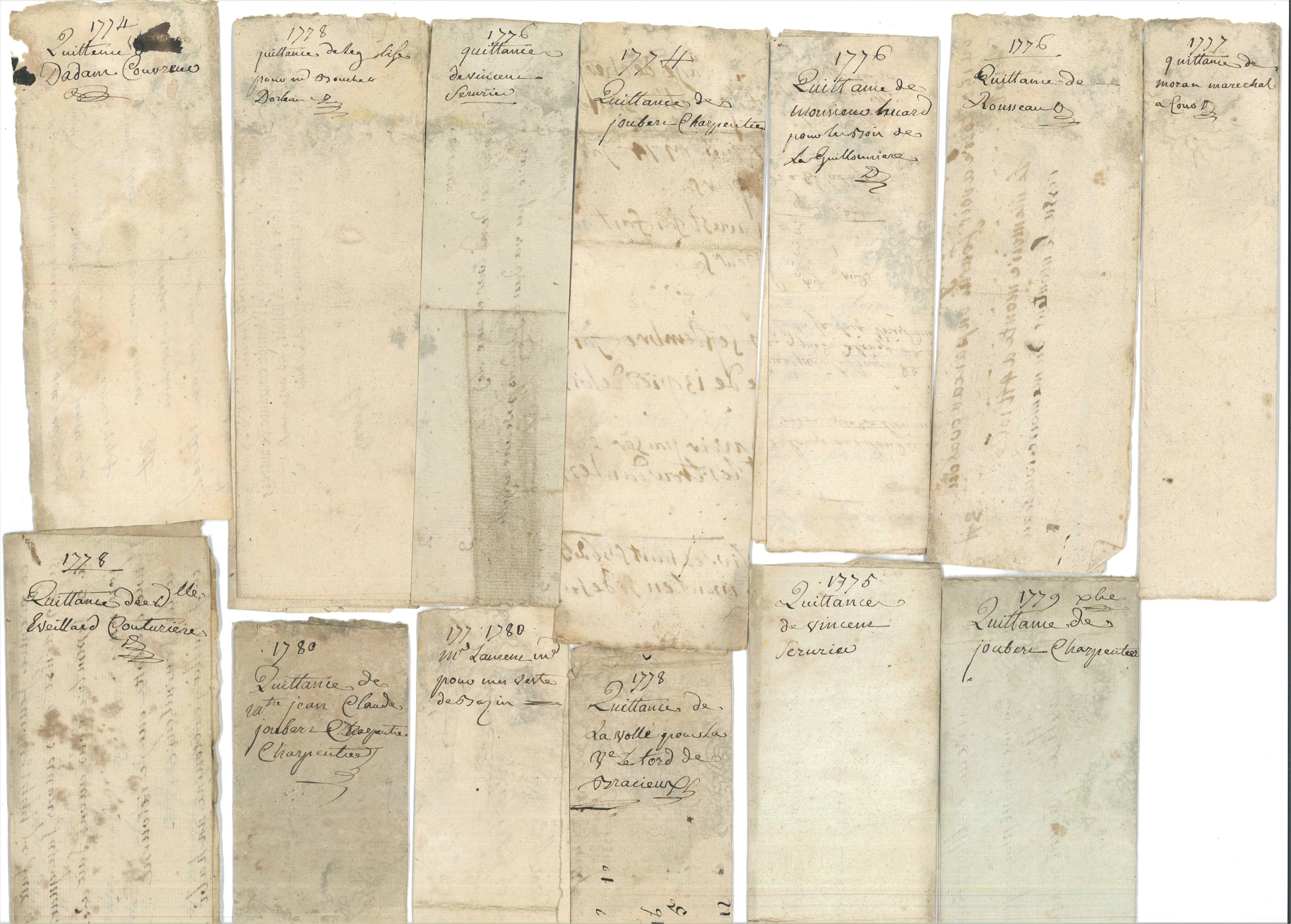 Env. 15 quittances, mémoires et lettres de change, 1774-1794 ;