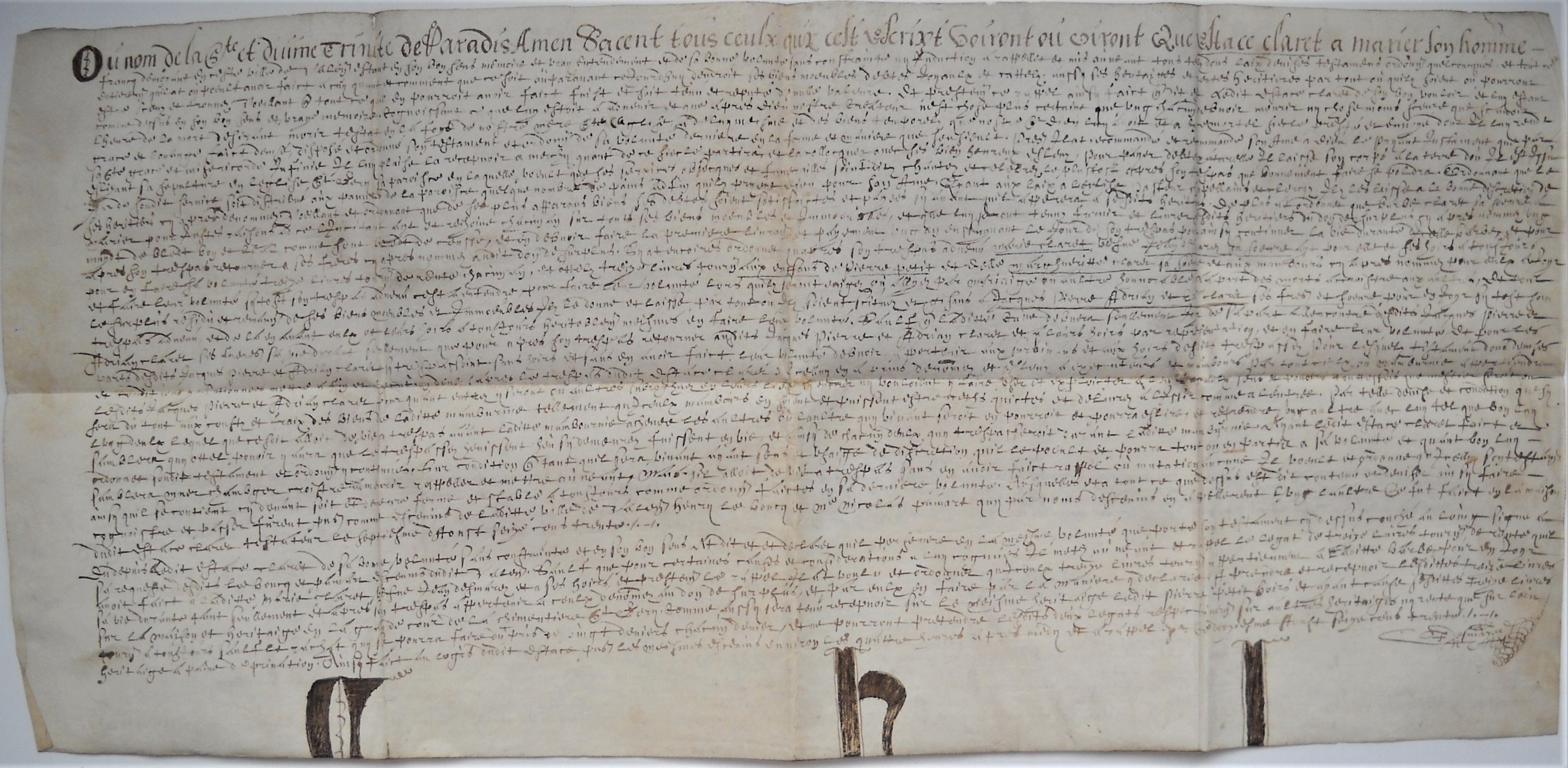 Actes de rentes, partages de succession, testaments, etc, dont: Testament du 1er février 1608 de Jacques Claret, parchemin 56 x 57 cm ; testament du 12 août 1630 dEustace Claret, parchemin 34 x 71 cm ; Partage de la succession du 1er octobre 1633 de Jacques Claret ; testament du 11 janvier 1638 de Marie Bauldry veuve de Jean Flameng ; Partage du 26 août 1649 de la succession de Marie Bauldry veuve de Jean Flameng ; etc.