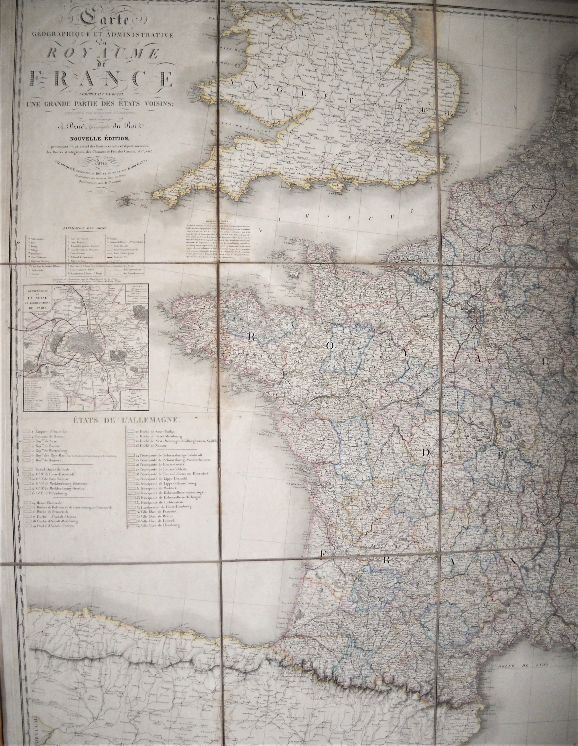 « Carte géographique et administrative du royaume de France. Par A. Brué géographe du roi, 1845, Paris, Picquet » ; 132 x 198 cm ;