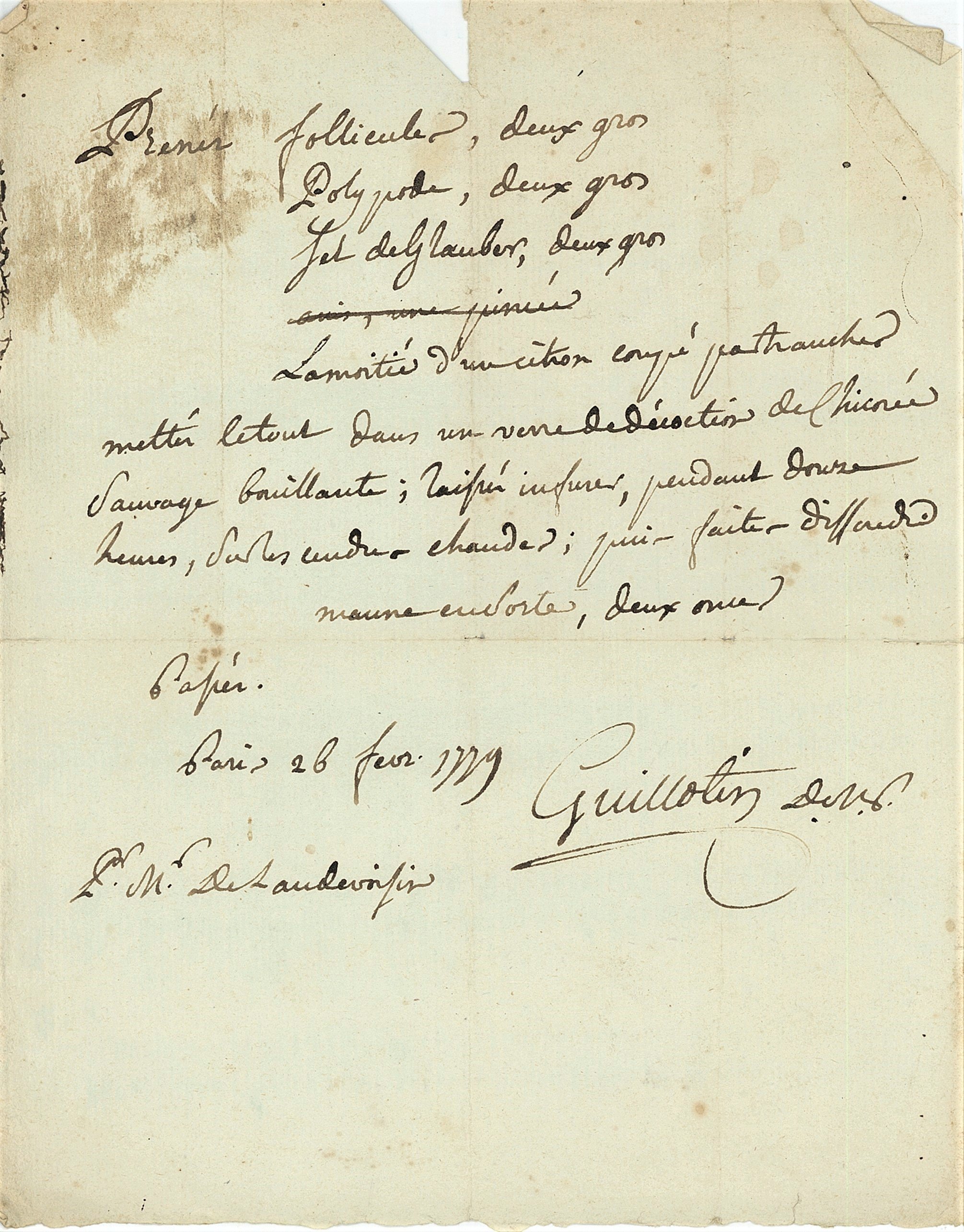 ![Lot 366 - [Médecine] JOSEPH-IGNACE GUILLOTIN (1738-1784), CÉLÈBRE MÉDECIN QUI A FAIT VOTER... [Médecine] JOSEPH-IGNACE GUILLOTIN (1738-1784), CÉLÈBRE MÉDECIN QUI A FAIT VOTER...](<150:ddoc-1254738-a4543bca72cf6465a52684548a7e84df-366_5.jpg, <480:ddoc-1254739-91fabaa78c4e57a7bed567763e5cfcc0-366_5.jpg, <640:ddoc-1254740-ae9bc137f62359650404dc3ad77e4372-366_5.jpg, <900:ddoc-1254741-8eabcb85e82988a7696c0ce3b02534a6-366_5.jpg, <1200:ddoc-1254742-8a311edaad4296a7880276af2d46b246-366_5.jpg, >1200:ddoc-1254737-dd26e4e5974b1e0e818a1c21b55dacdb-366_5.jpg)