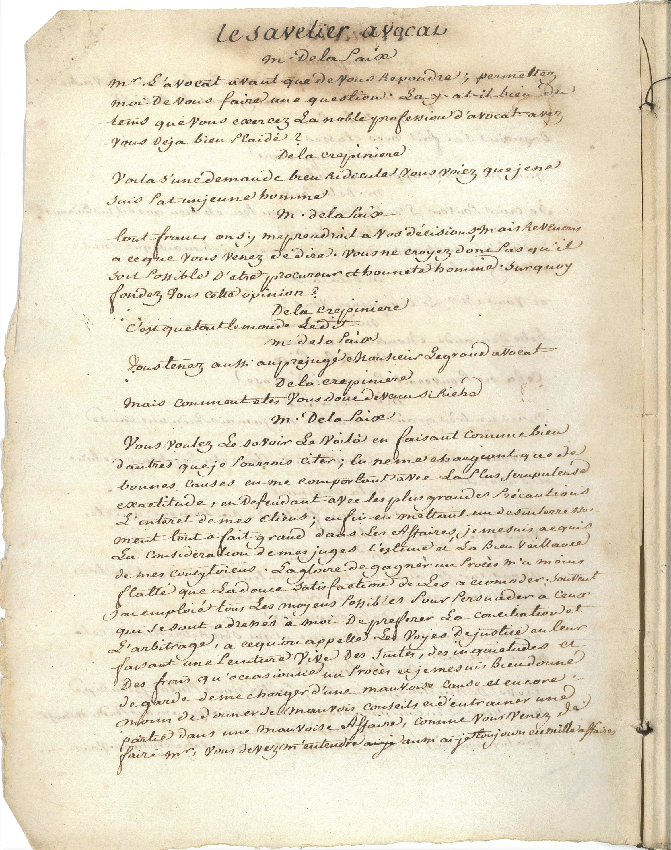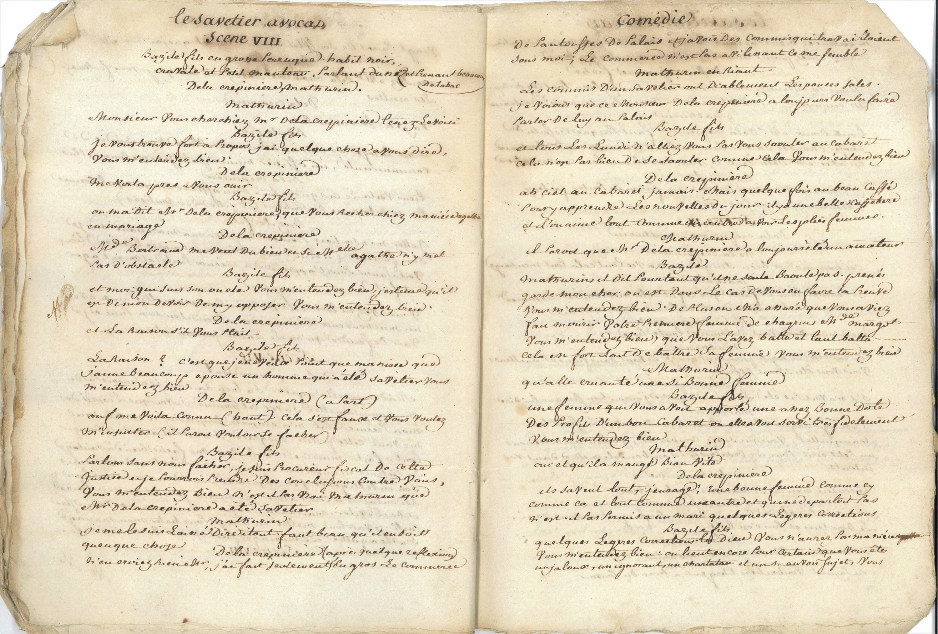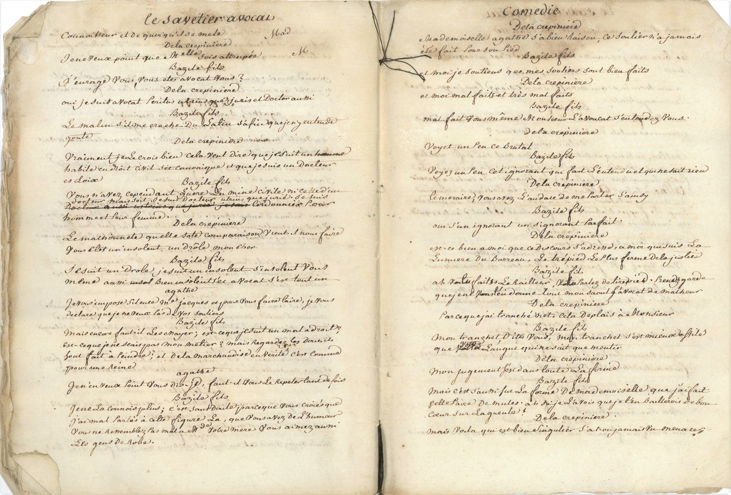 JOINT : Manuscrit anonyme incomplet dune comédie titrée Le Savetier avocat, 29 pp. in-4, XVIIIe siècle ?