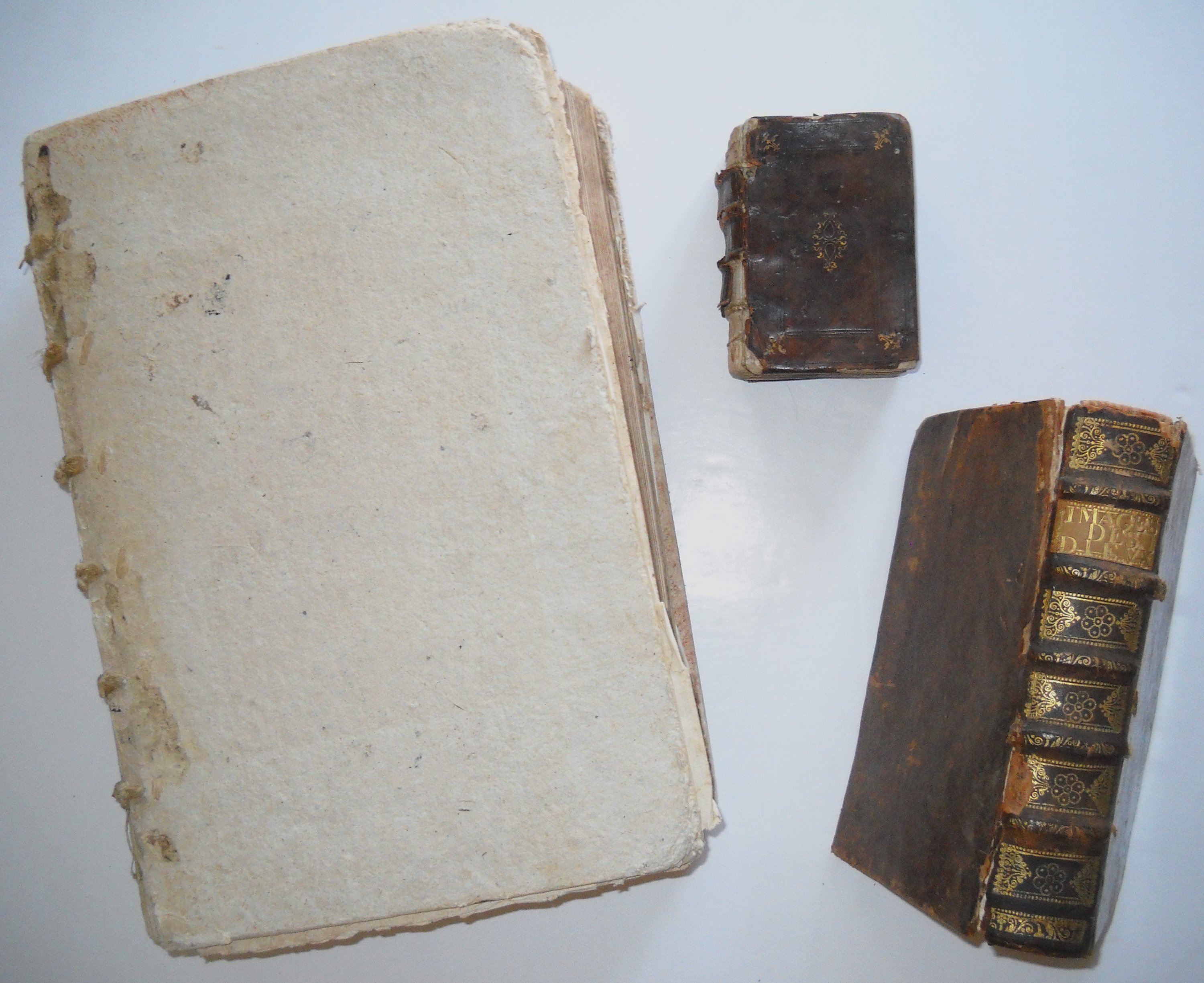 Clément Marot, recueil rel. veau in-16 (en létat) comprenant « Les uvres de Clément Marot de Cahors, vallet de chambre du Roy », Paris, Benoist Prevost, 1551, 372 ff. avec les tables des uvres (12) ff., suivi de « Lenfer de Marot » (16 ff.) et de « Cinquante deux pseaumes de David », Paris, Pierre Gaultier, 1556, 78 pages (incomplet et en létat) ;
