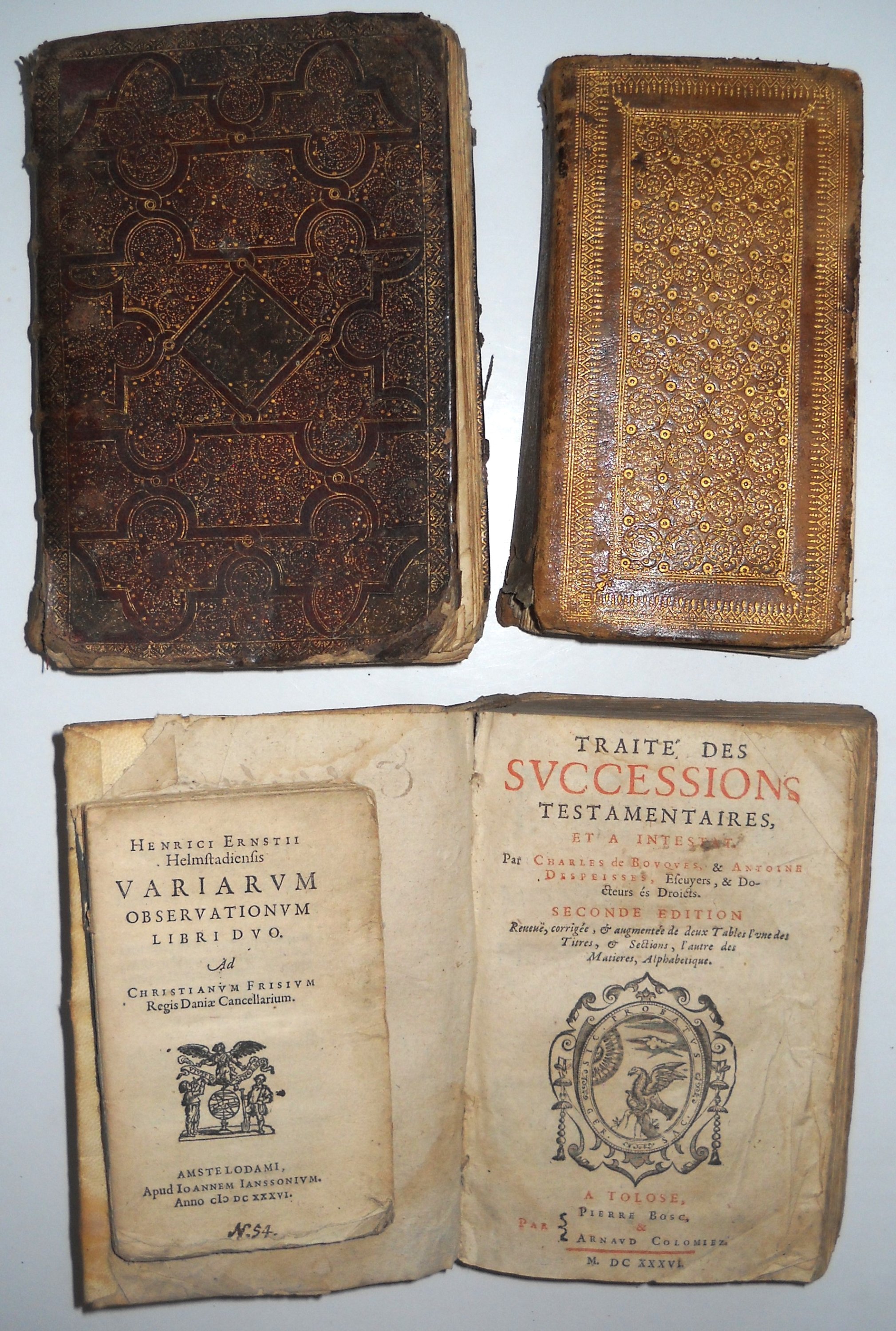 De Bouques et Despeisses, « Traité des successions testamentaires et à intestat ». Toulouse, Bosc et Colomiez, 1636. Rel. parchemin in-8, 659 pp. et tables ;