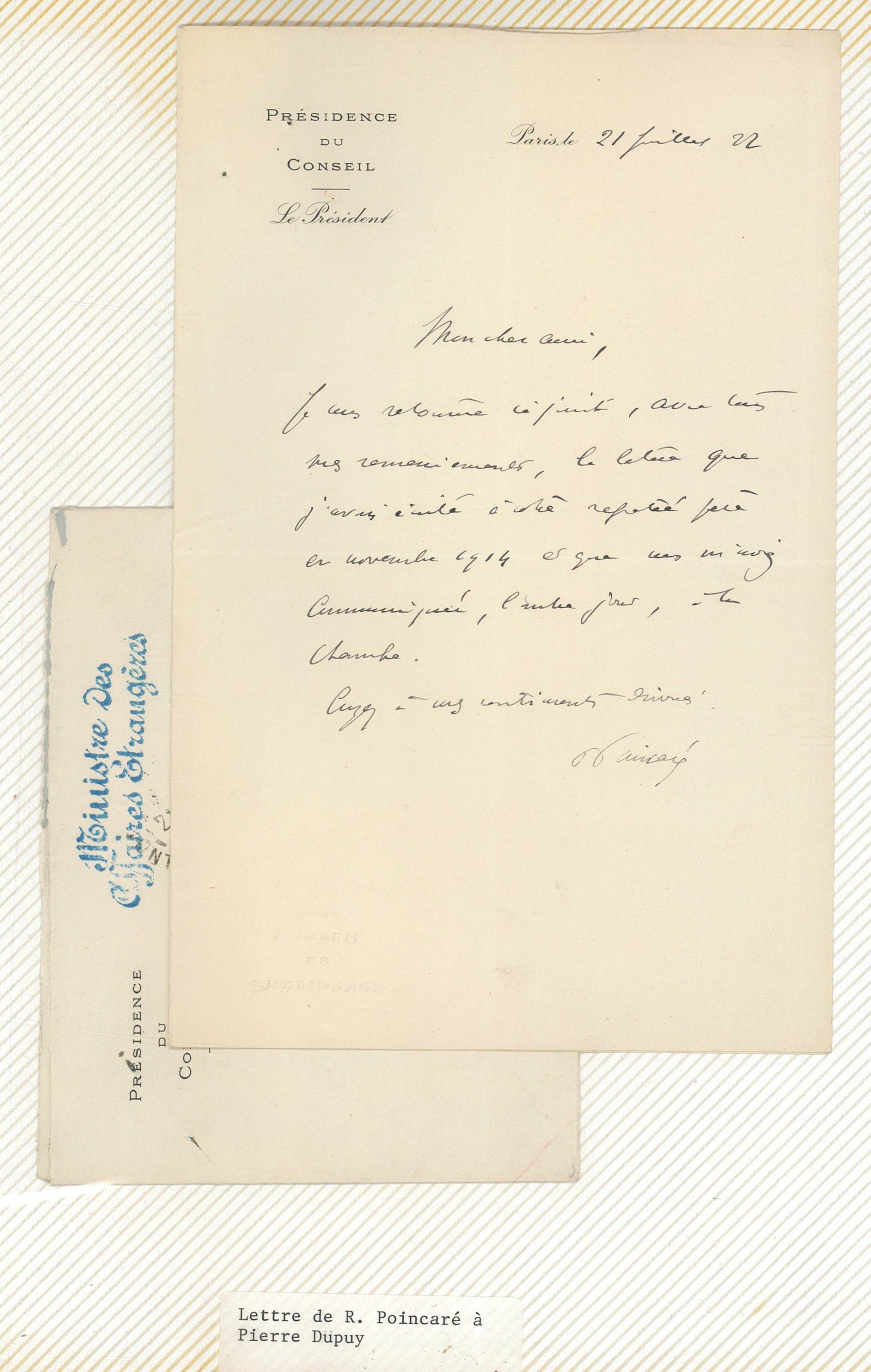 L.A.S. Raymond Poincaré président du Conseil (1922) ; L.A.S. Louis Rollin (1928) ; L.S. et L.A.S. Georges Mandel ;