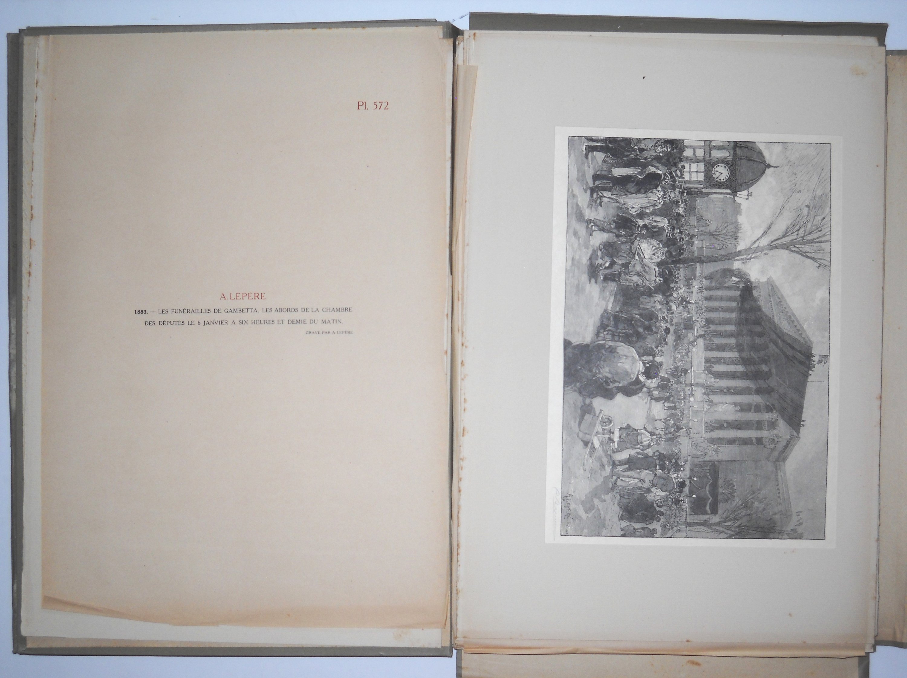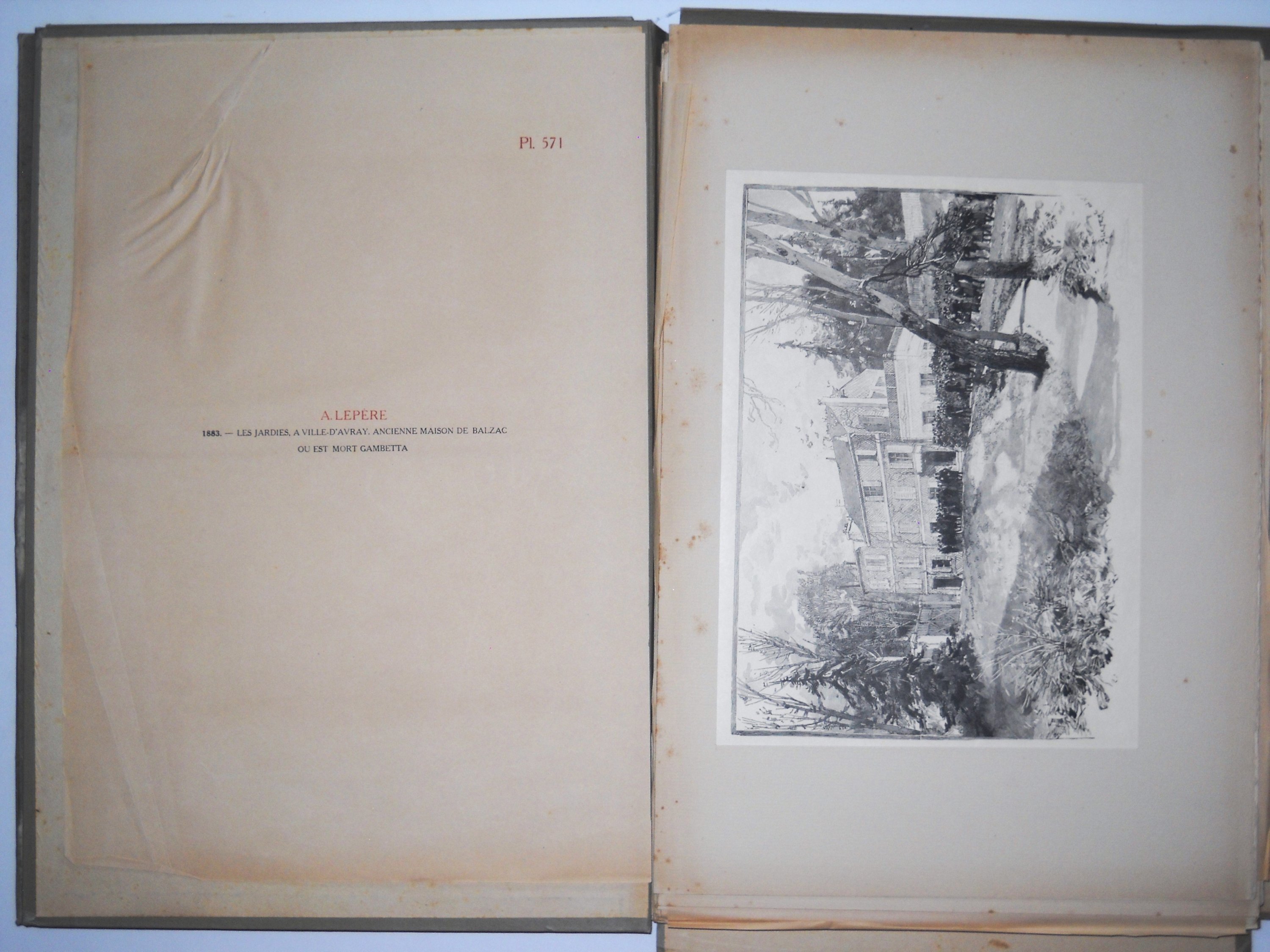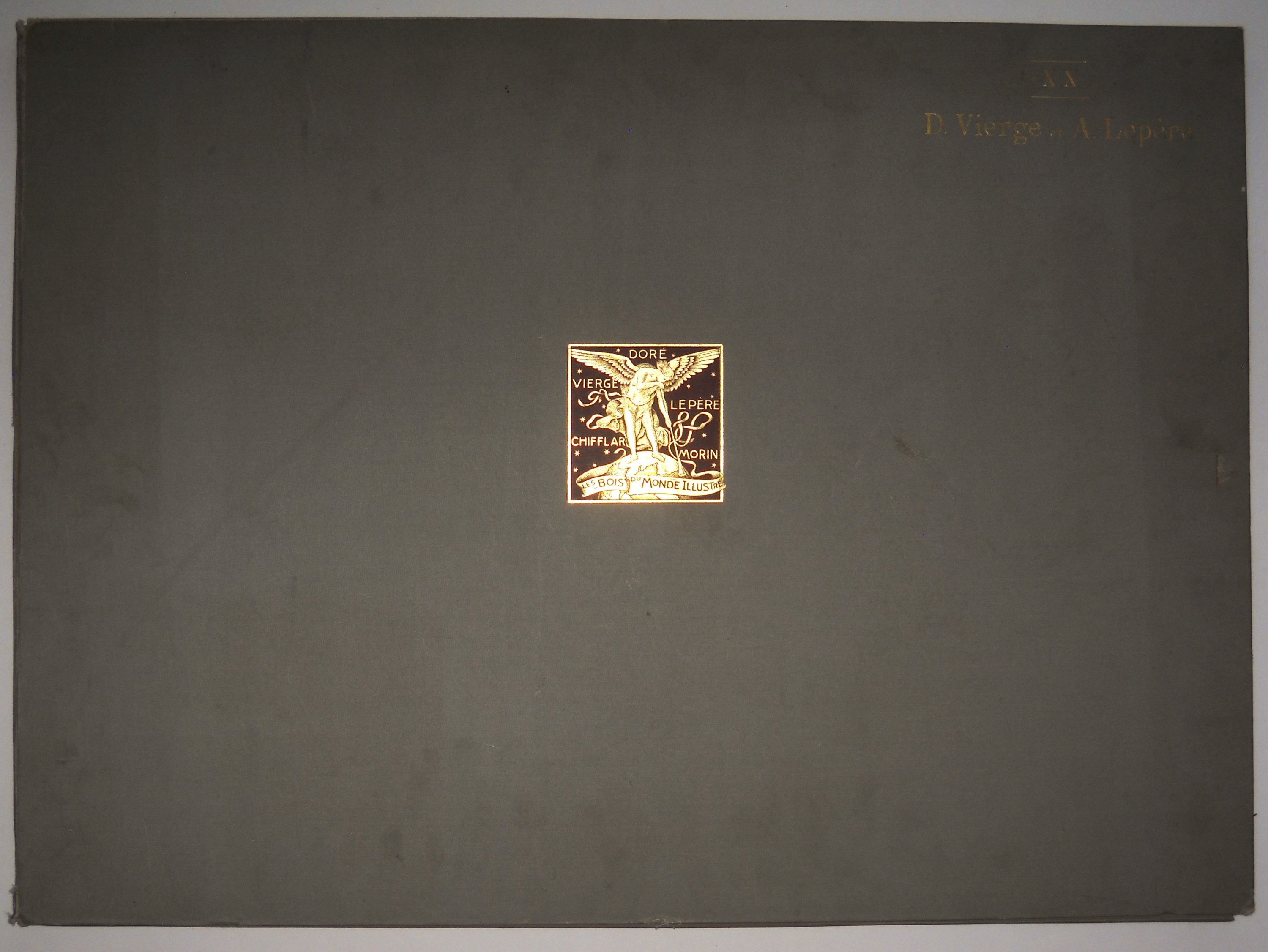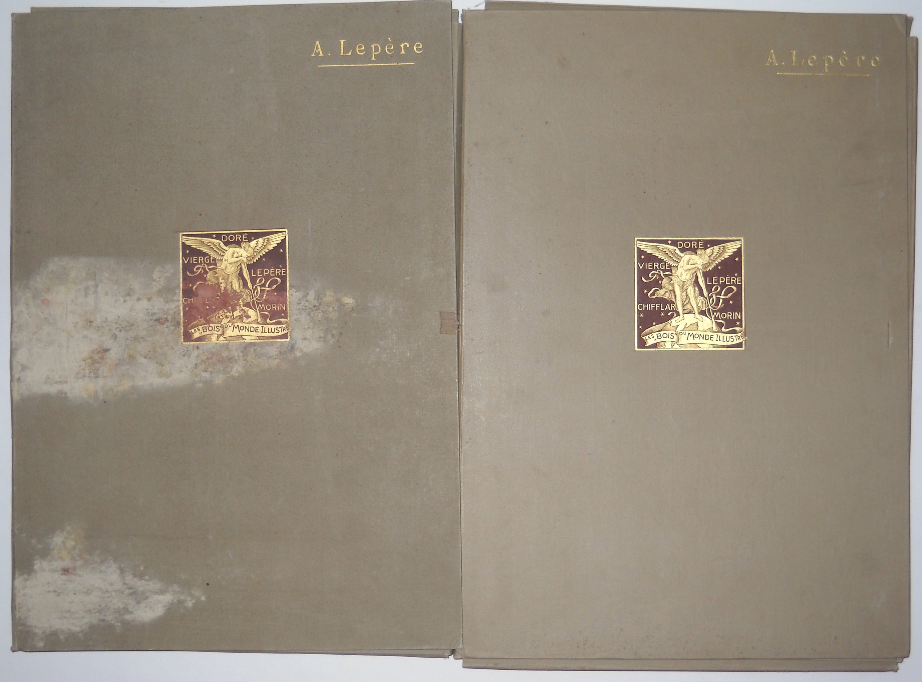 Les « Bois » du Monde Illustré. Notice inédite de Henri Lavedan. Paris, Au Monde illustré, s. d. (1916-). In-folio, chemises éditeur avec aplat doré sur fond marron sur le plat. Bon état (mouillures). Suite de pl. numérotées de 541 à 660 (chemises XIV à XVI) auxquelles sont jointes 11 pl. in-plano (sur 24) conservées dans la chemise XX « D. Vierge et A. Lepère ».