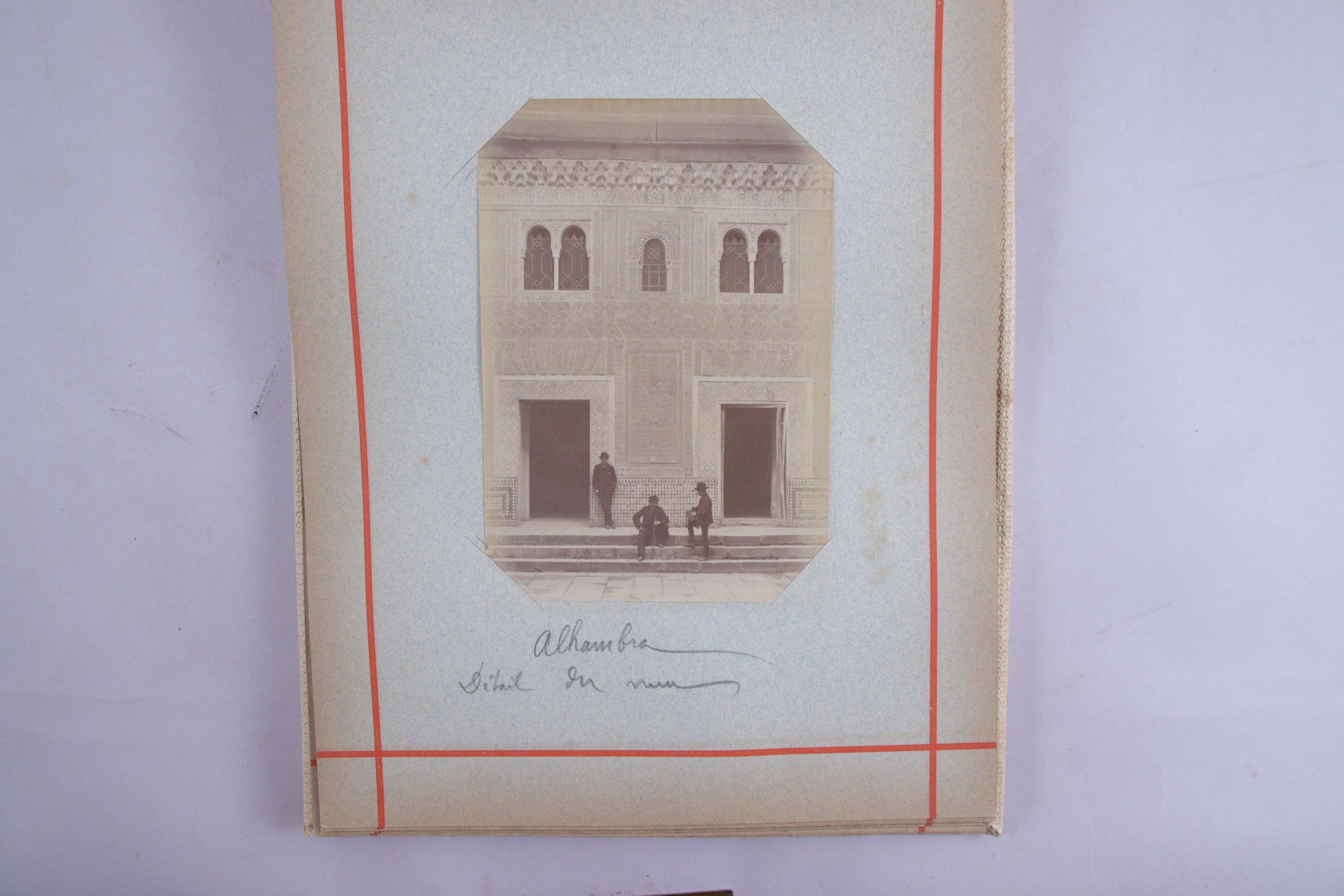 Environ 155 tirages sur papier albuminé, légendés à la mine de plomb sur les montages sous les photographies. Vues dun voyage en Algérie & Tunisie dont Biskra, scènes et types, vues de ville, ports, Alger, marche de Boufarik, Oran. Vues du voyage retour par lEspagne dont Alhambra de Grenade, Alcazar de Séville, Tolède